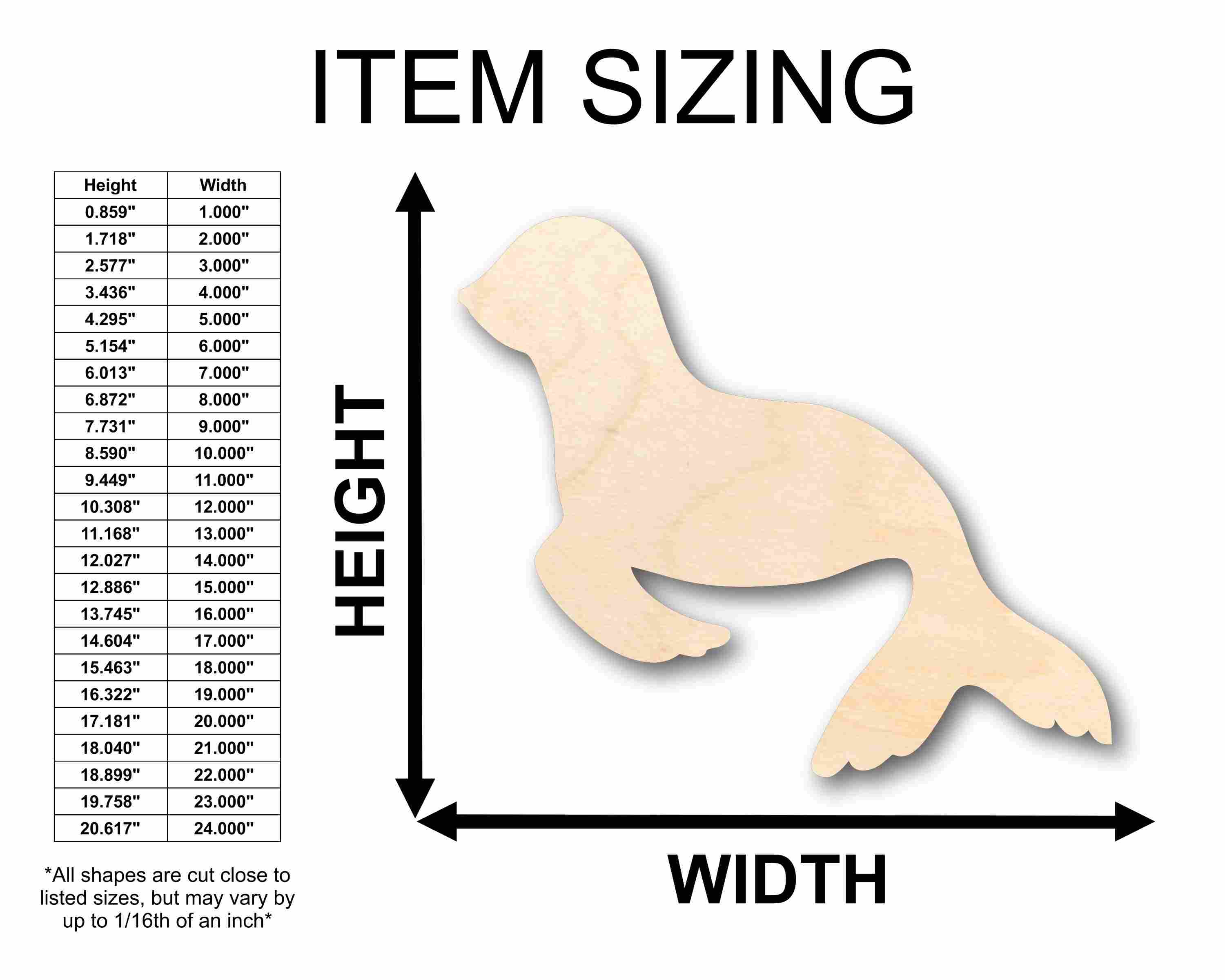 Unfinished wood shapes are available from 3" up to 48" (Some intricate shapes will not be available at smaller sizes)