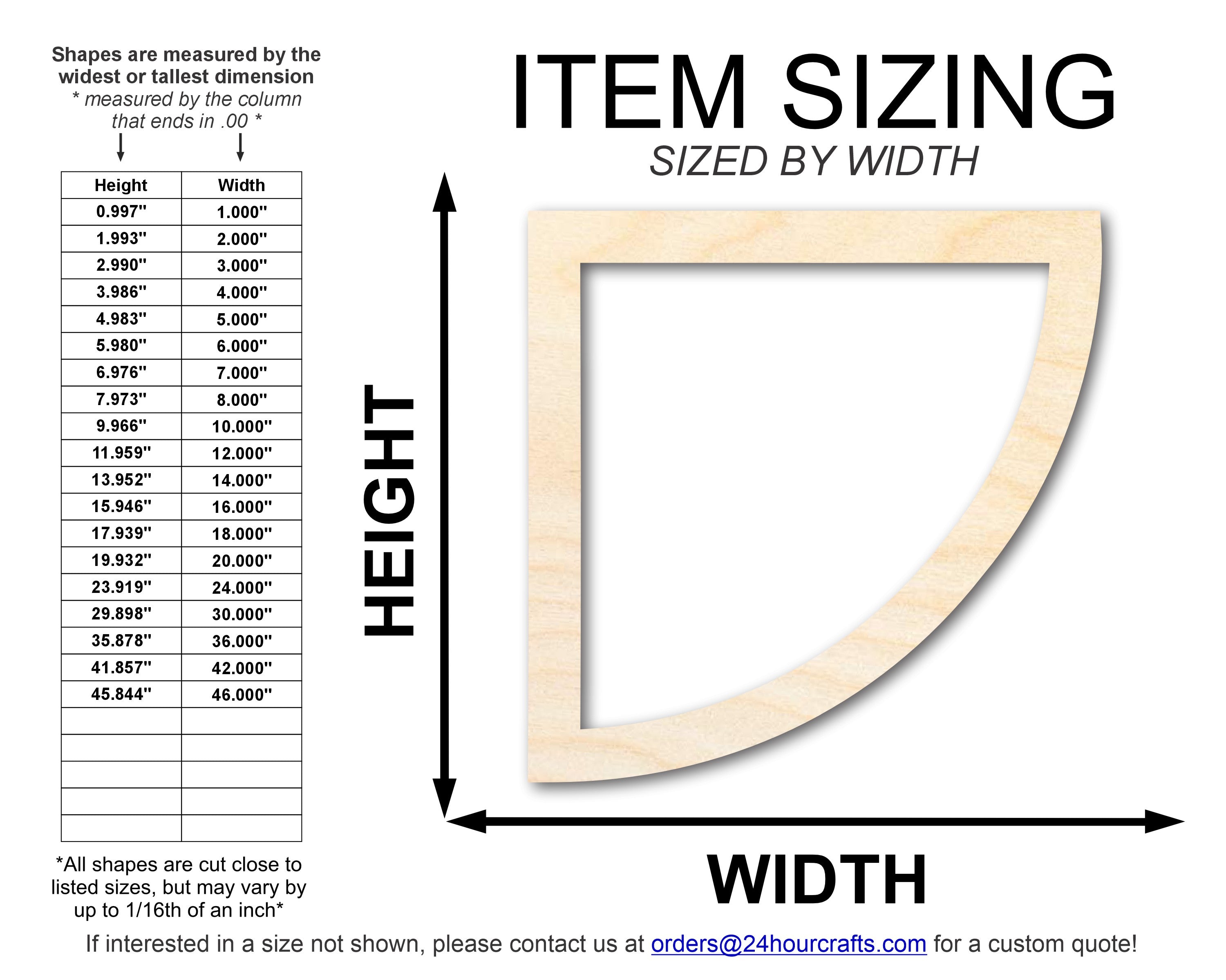 Unfinished Wood Quarter Circle Outline Shape | DIY Craft Cutout | up to 46" DIY