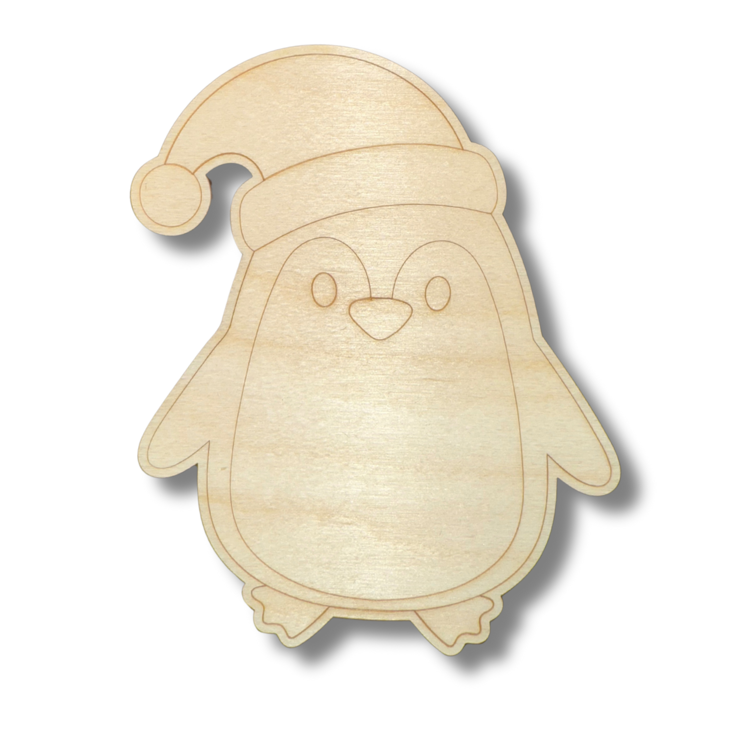 Unfinished Wood Etched Winter Penguin Shape | Paint By Line Crafts | up to 30" DIY