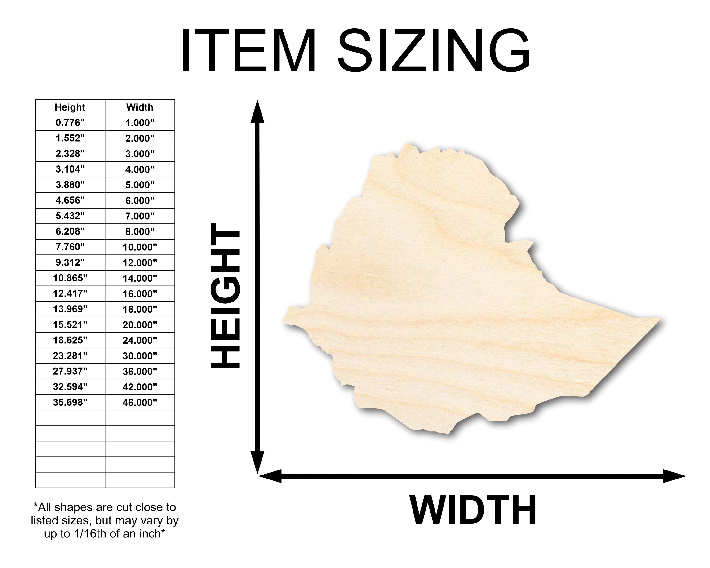 Unfinished Wood Ethiopia Country Shape - East African Craft - up to 46" DIY