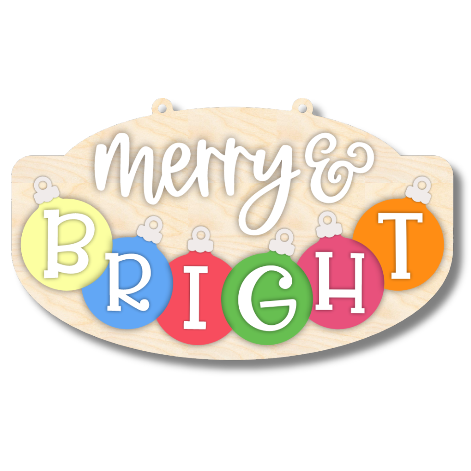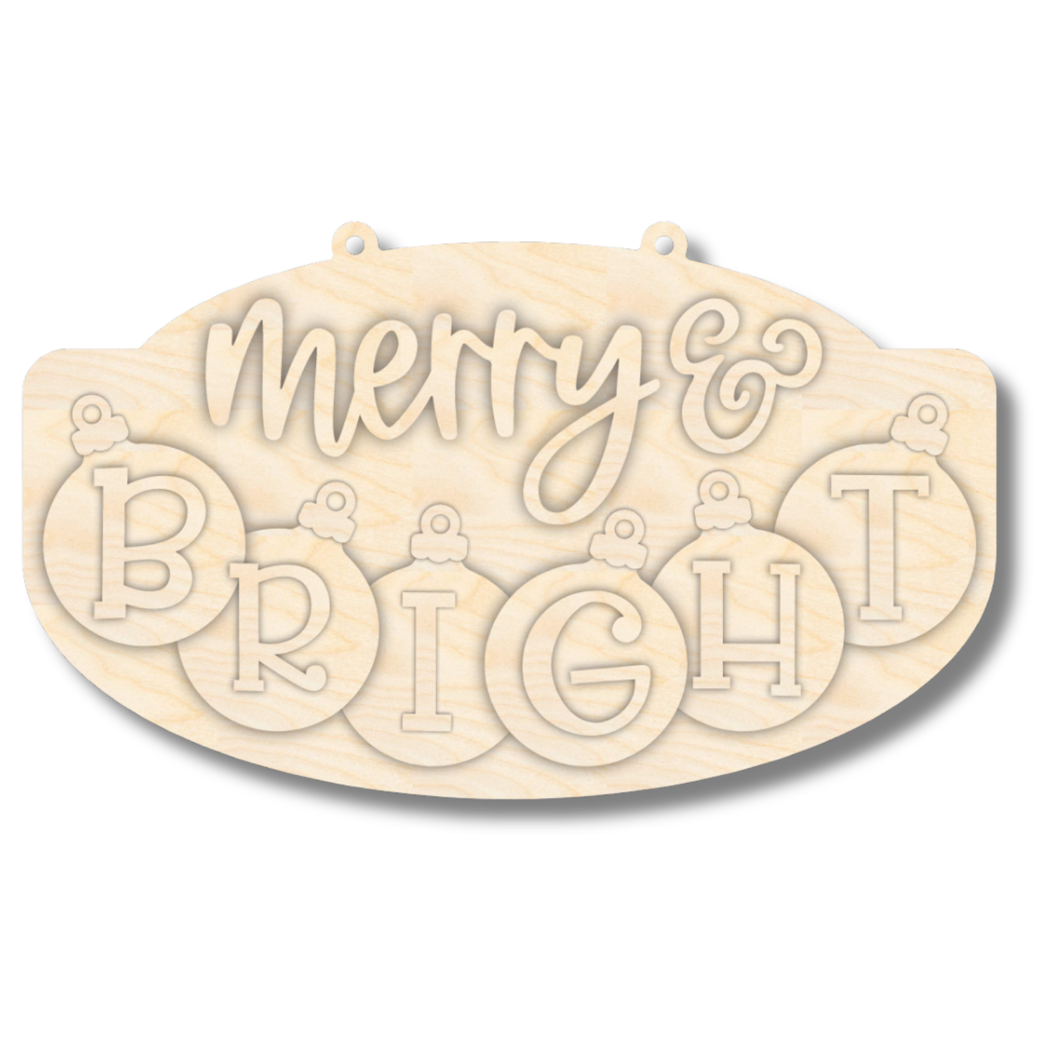 Unfinished Merry and Bright Ornament Door Sign Kit | Wood Craft Cutouts | 1/4" Thick |