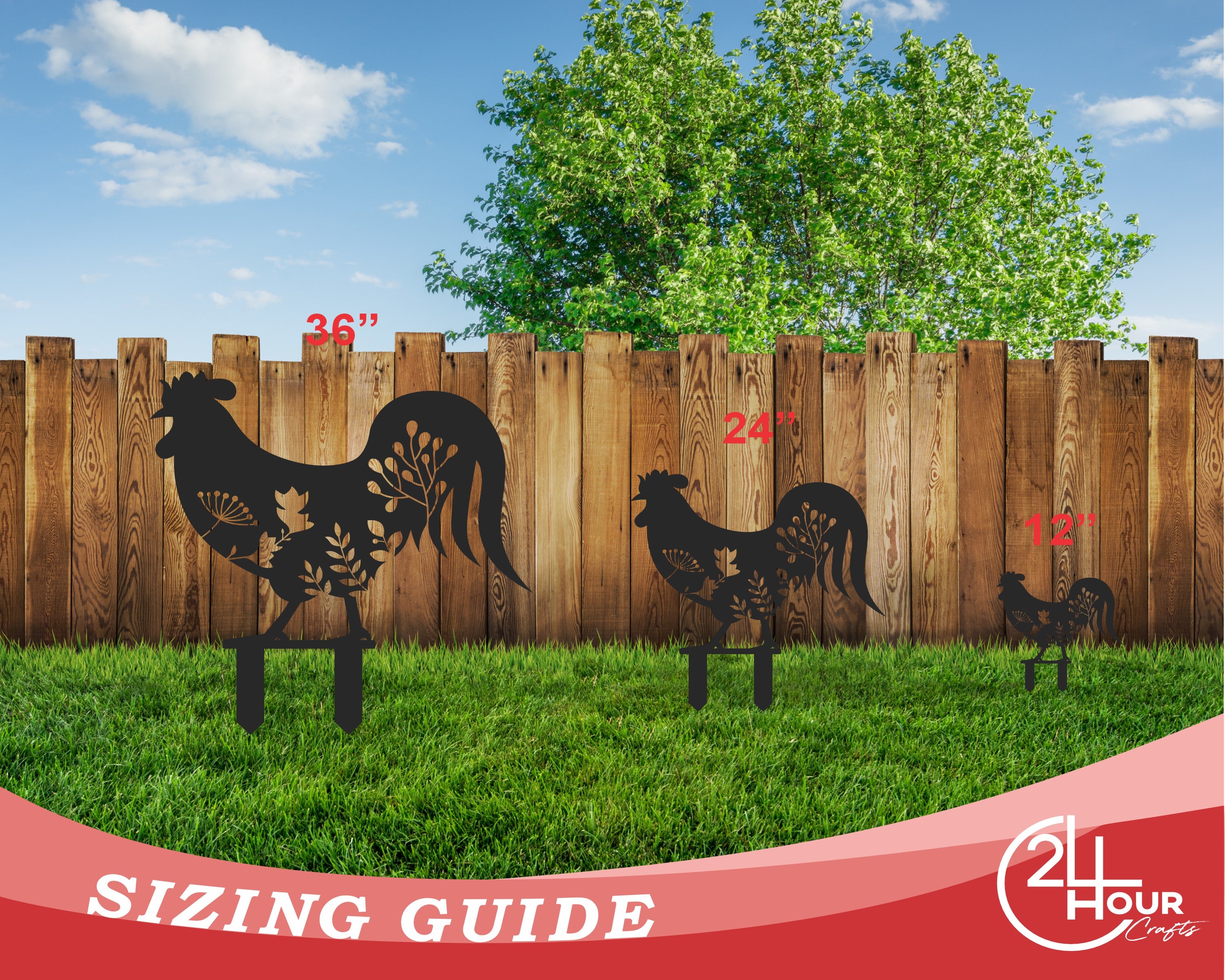 Introducing our Metal Chicken Garden Stakes, a delightful 4-piece garden set designed to infuse your outdoor space with charm and vibrancy. Crafted from durable metal, these stakes boast intricate floral chicken designs that add a whimsical touch to any garden or yard. The set includes four stakes ranging from 10 to 30 inches in height, allowing you to create a dynamic display. Choose from over 20 stunning color options to suit your style and garden aesthetic perfectly. Each stake is carefully painted and coated to withstand the elements, ensuring they remain beautiful and colorful through various seasons. Whether you're looking to accentuate your flower beds, line your pathways, or adorn your vegetable patch, these Metal Chicken Garden Stakes are the ideal addition to elevate your outdoor space with a touch of nature-inspired elegance. Bring a splash of color and personality to your garden with this versatile and enchanting set.