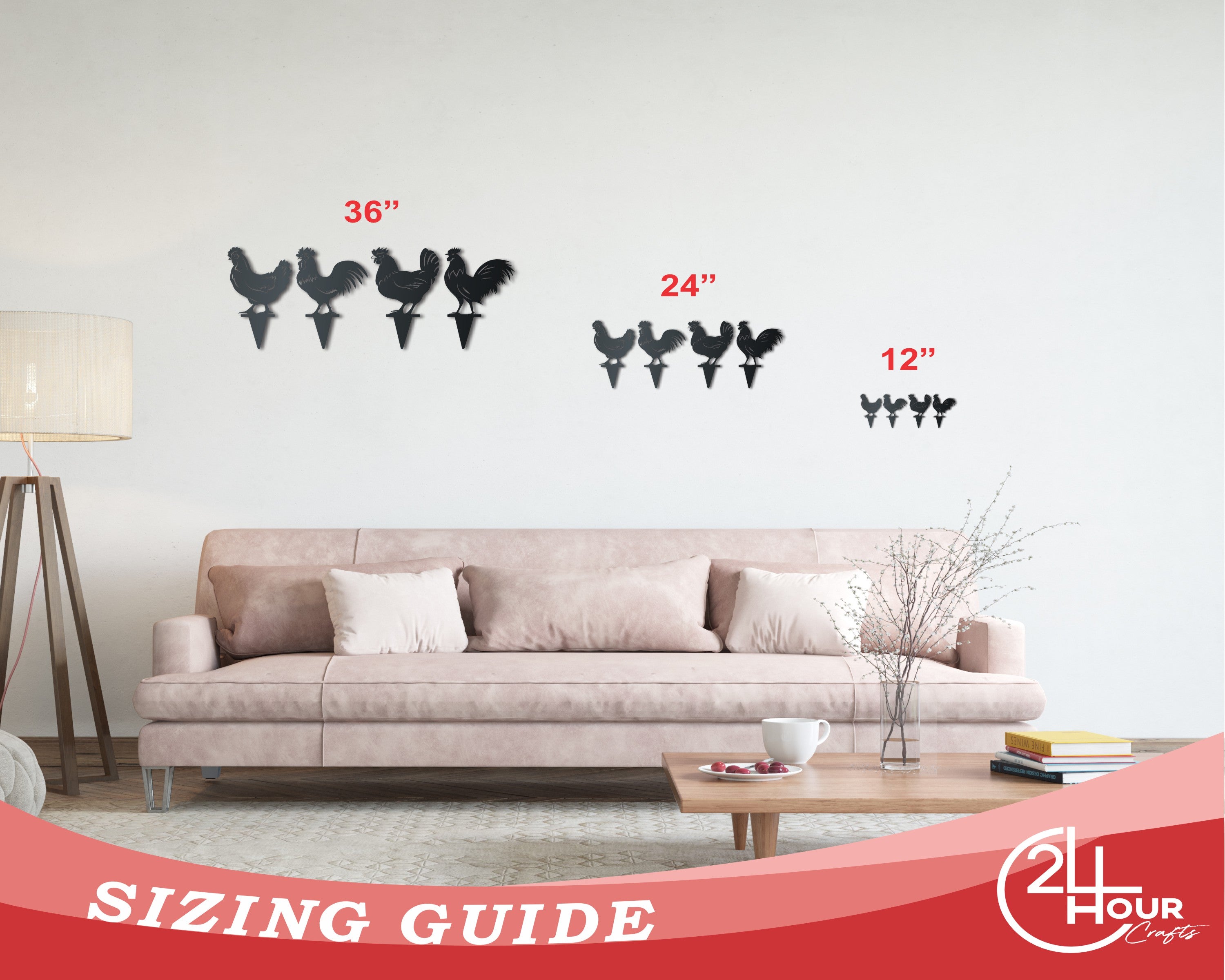 Metal Chicken Garden Stakes | Metal Garden Set | Outdoor | Up to 24" | Over 20 Color Options