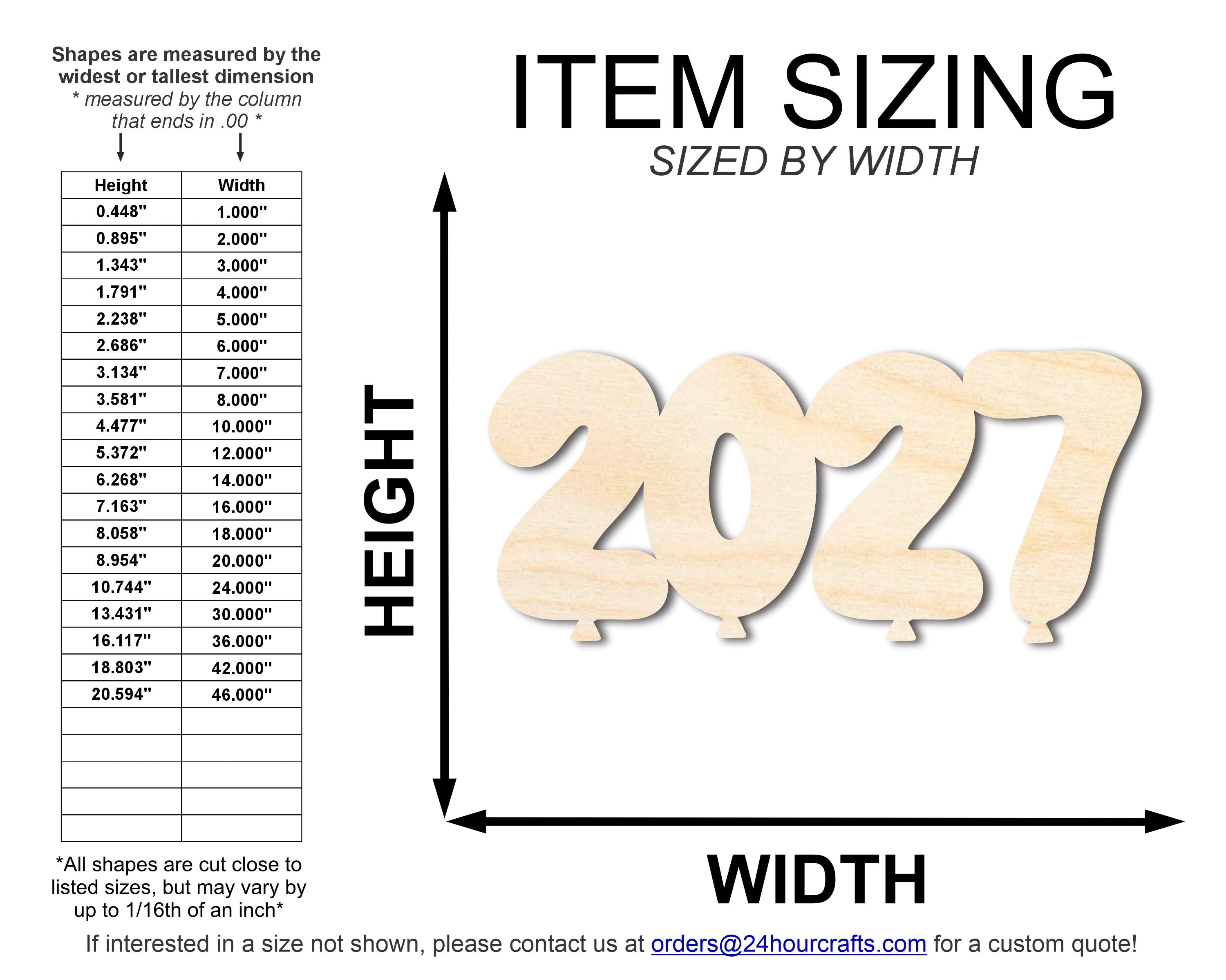 Unfinished Wood 2027 Balloons Shape | DIY Craft Cutout | up to 46" DIY
