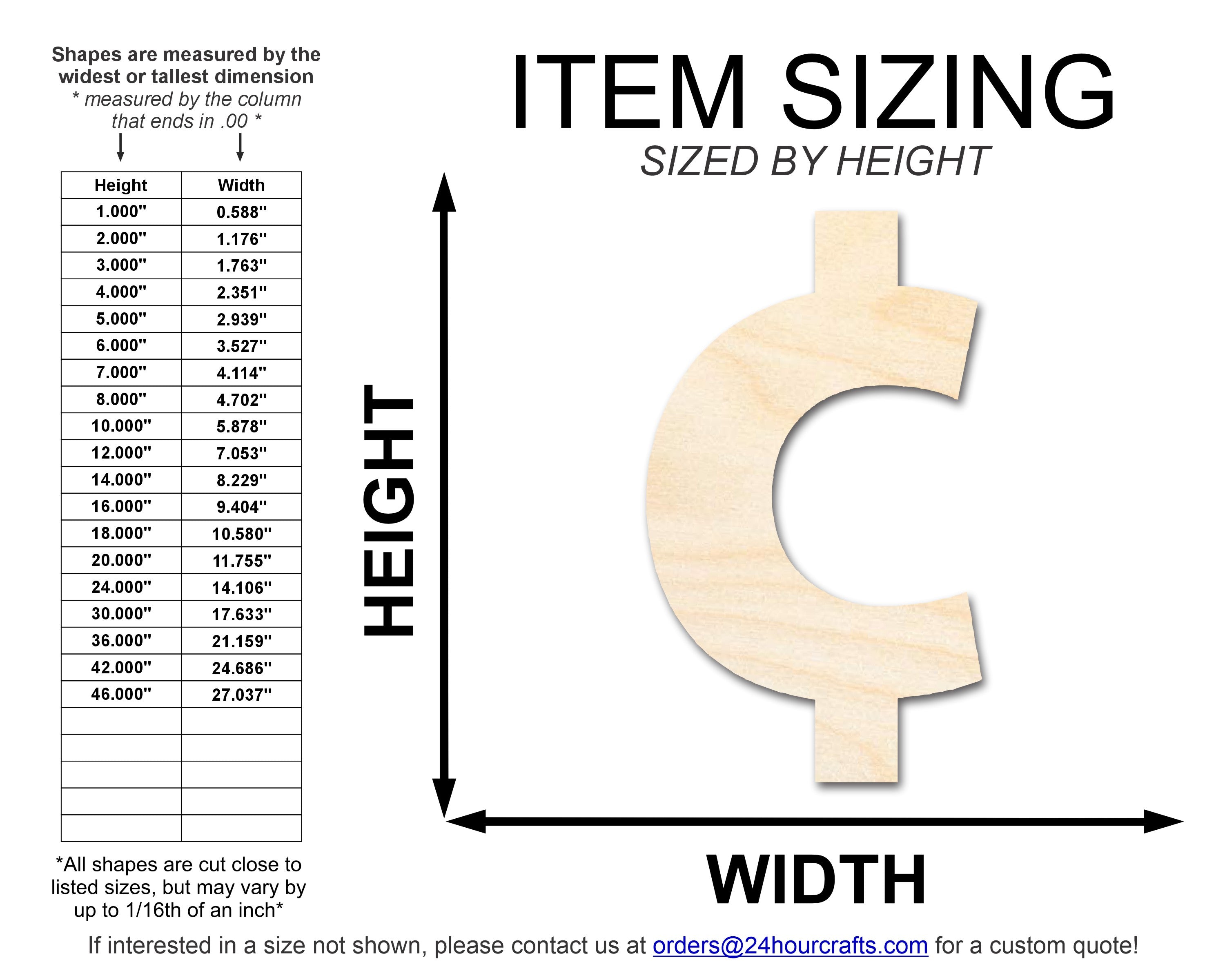 Unfinished Wood Cent Symbol Shape | DIY Craft Cutout | up to 46" DIY