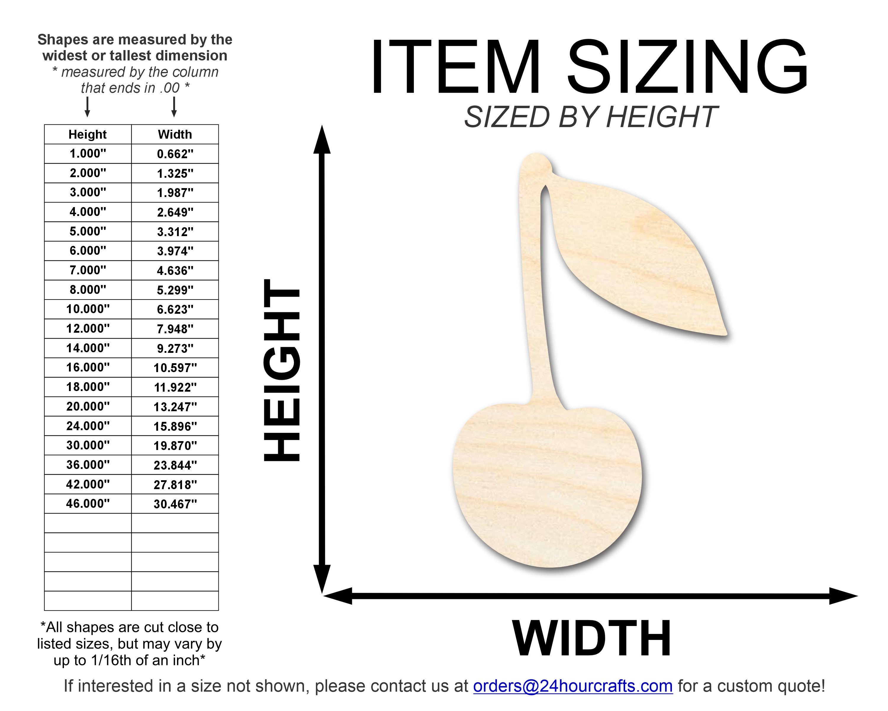 Unfinished Wood Cherry with Leaf Shape | DIY Craft Cutout | up to 46" DIY