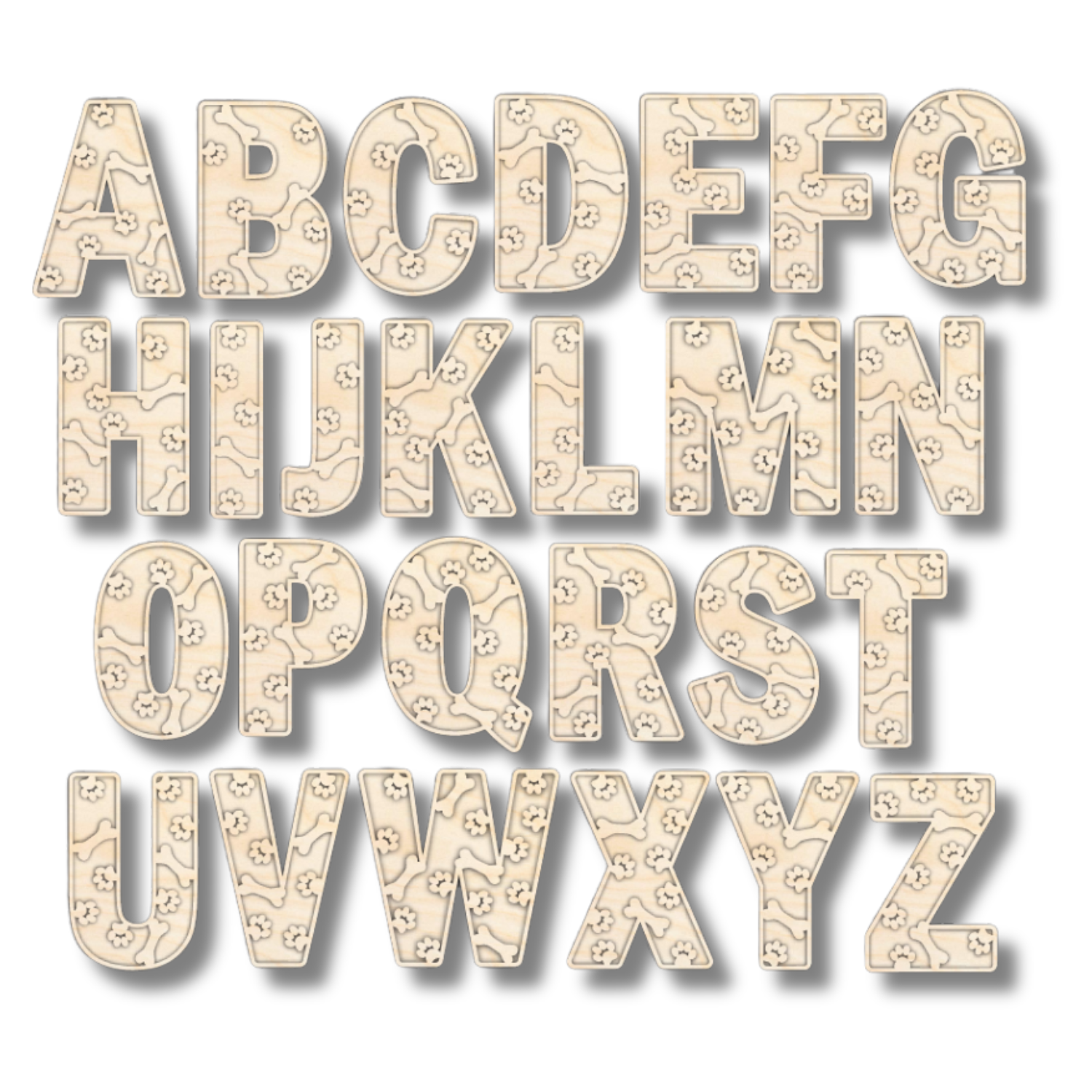 Unfinished Wood Layered Themed Letters | Paw Print | A-Z | 2 Piece | up to 24"