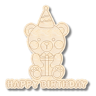 Unfinished Wood Etched Birthday Bear with Gift Shape | Paint By Line Crafts | up to 30" DIY
