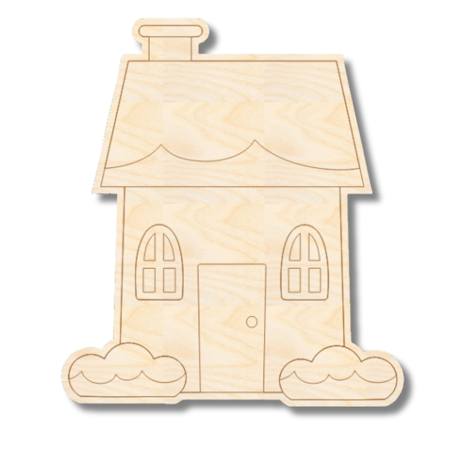 Unfinished Wood Etched Cabin Shape | Paint By Line Crafts | up to 30" DIY