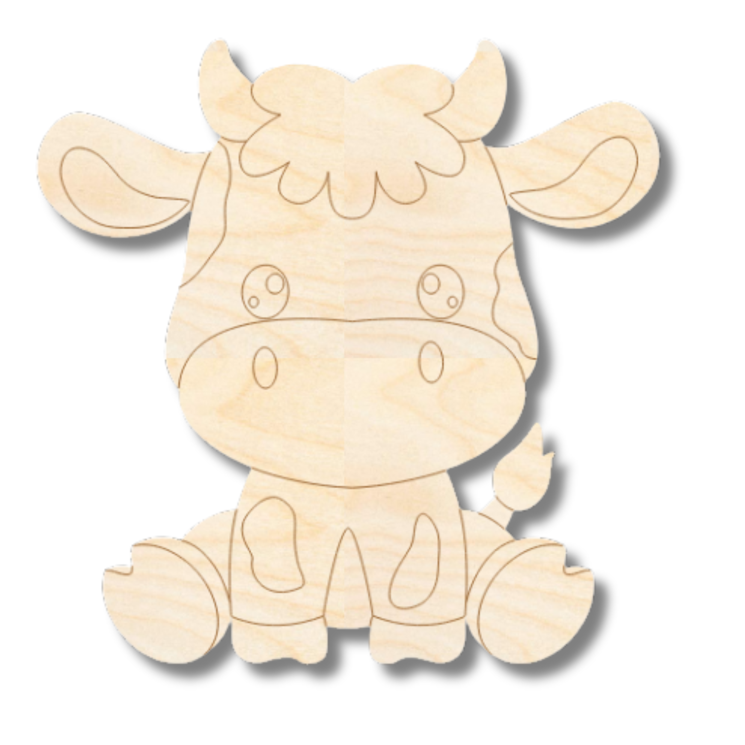 Unfinished Wood Etched Cow Shape | Paint By Line Crafts | up to 30" DIY