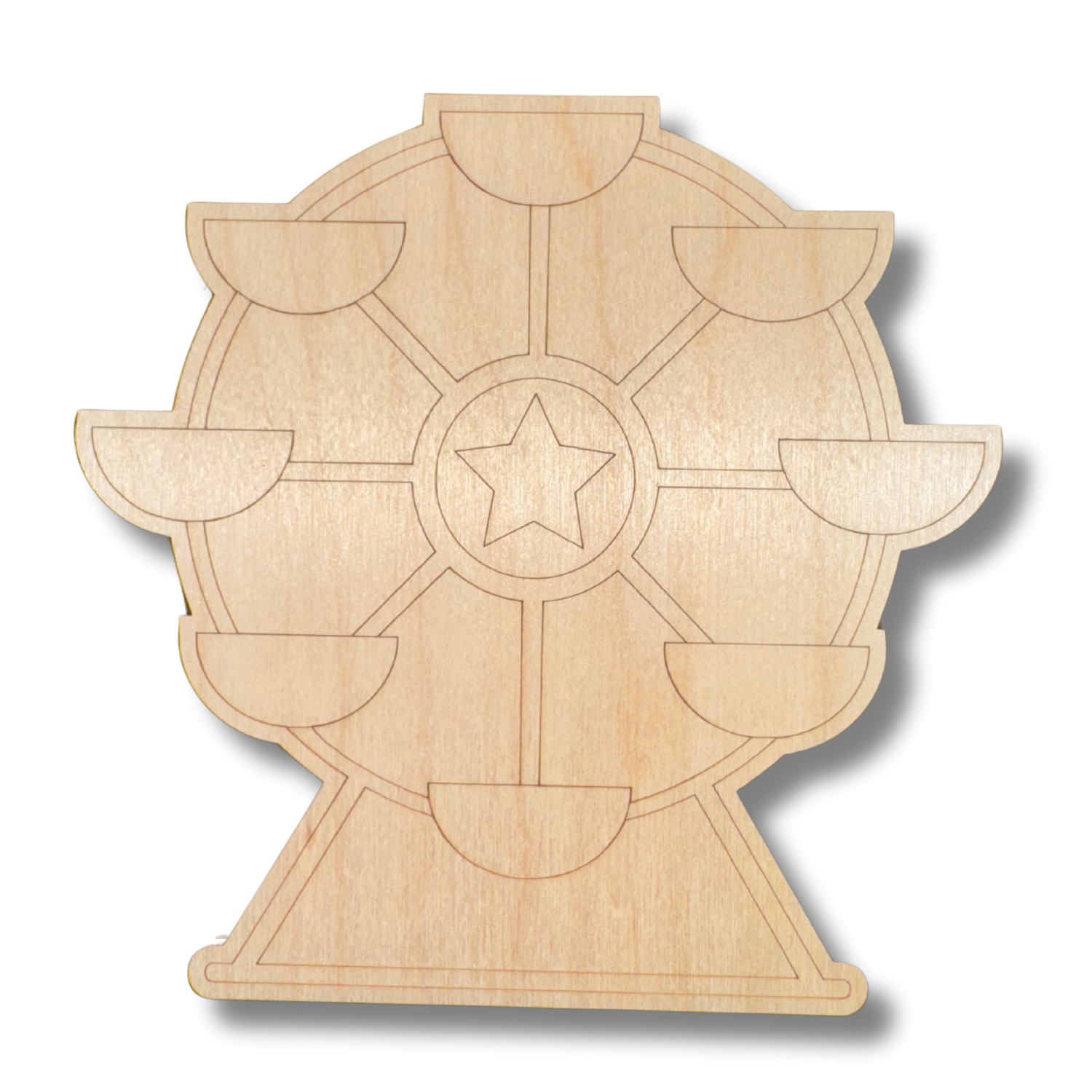 Unfinished Wood Etched Ferris Wheel Shape | Paint By Line Crafts | up to 30" DIY