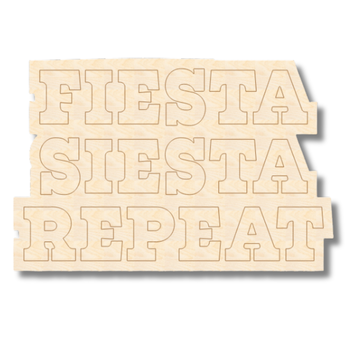 Unfinished Wood Etched Fiesta Siesta Repeat Shape | Paint By Line Crafts | up to 30" DIY