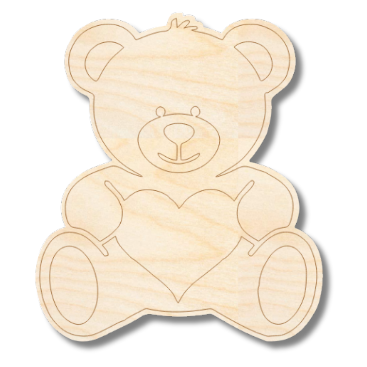 Unfinished Wood Etched Heart Bear Shape | Paint By Line Crafts | up to 30" DIY