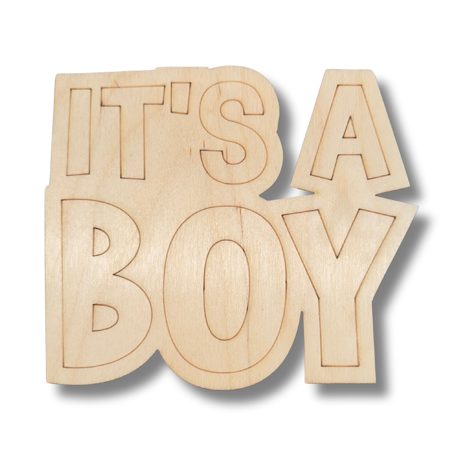 Unfinished Wood Etched It's A Boy Shape | Paint By Line Crafts | up to 30" DIY