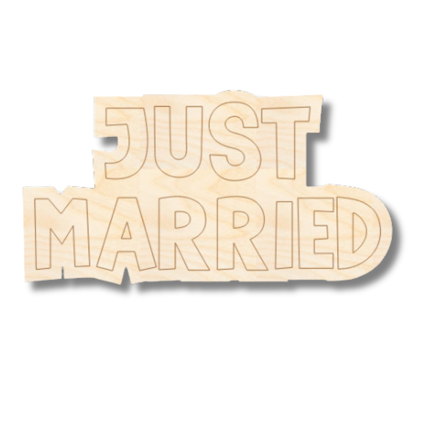 Unfinished Wood Etched Just Married Shape | Paint By Line Crafts | up to 30" DIY