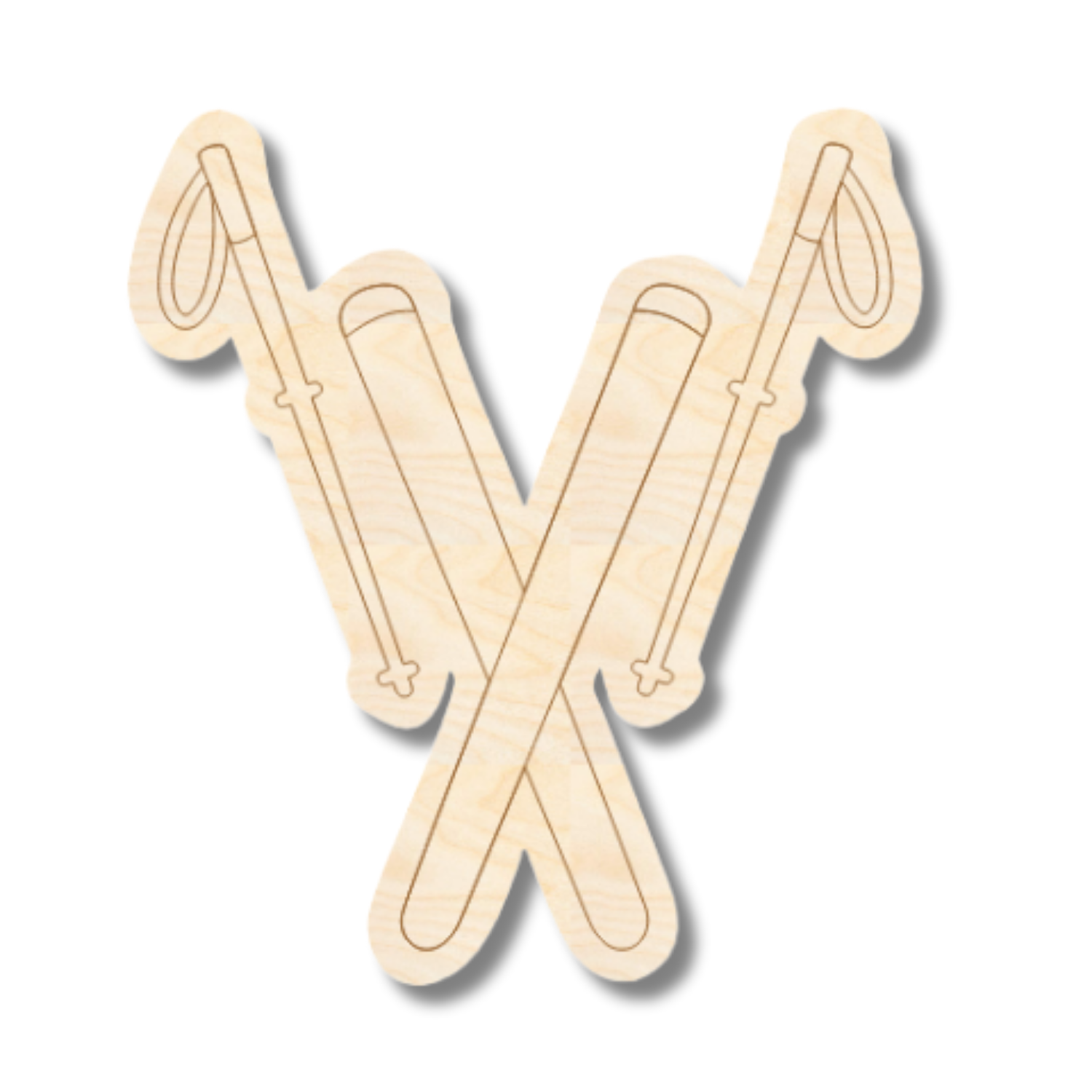 Unfinished Wood Etched Skis Shape | Paint By Line Crafts | up to 30" DIY