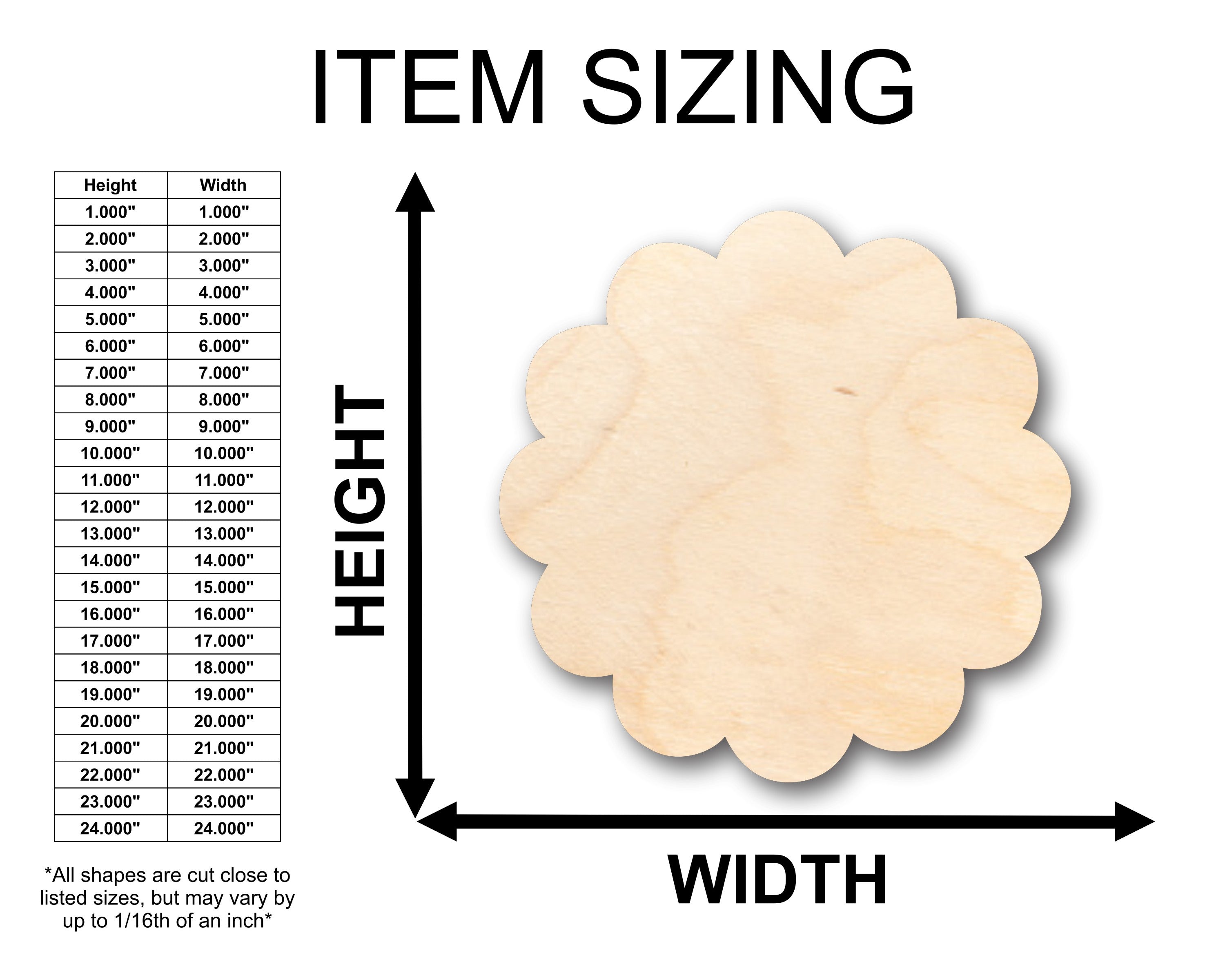 These Unfinished wood crafts are cut from 1/8 (3mm), 1/4 (6mm) or 1/2 (12mm) inch (MM) cabinet grade Baltic birch plywood. If you're interested in another thickness please message us!