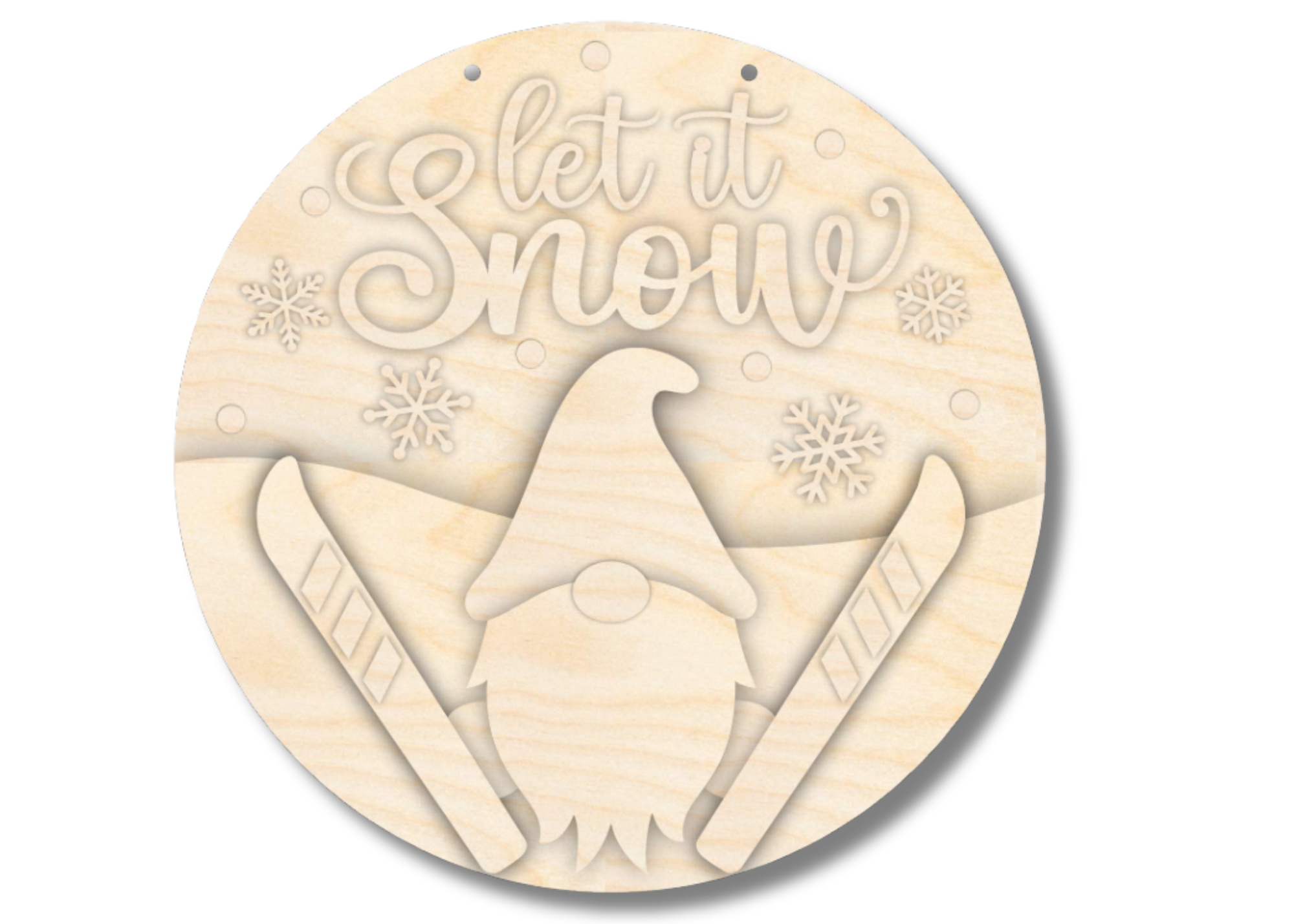Unfinished Wood Let It Snow Gnome Door Sign Kit | Wood Craft Cutouts | 1/4" Thick |