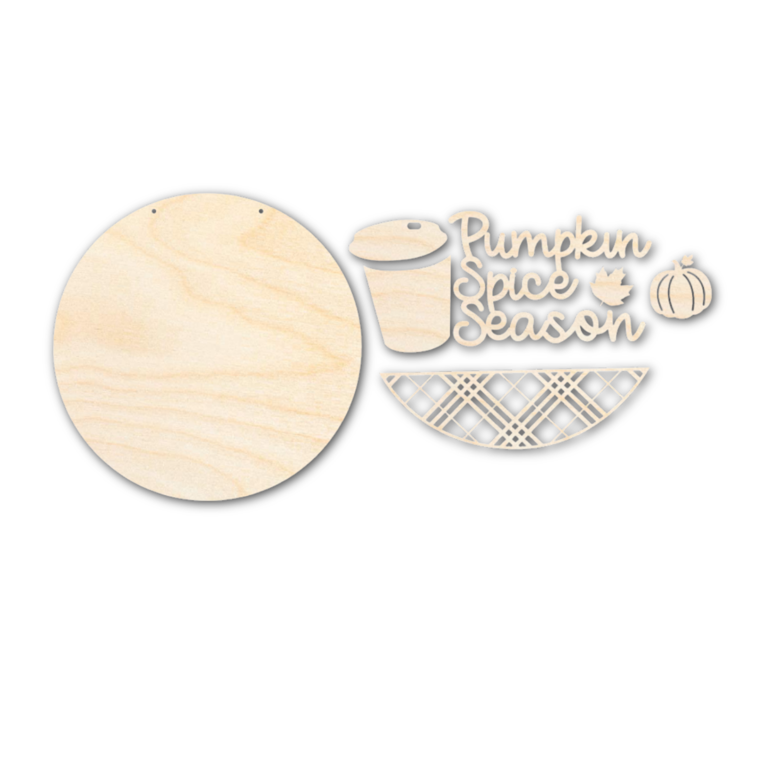 Unfinished Wood Pumpkin Spice Season Door Sign Kit | Wood Craft Cutouts | 1/4" Thick |