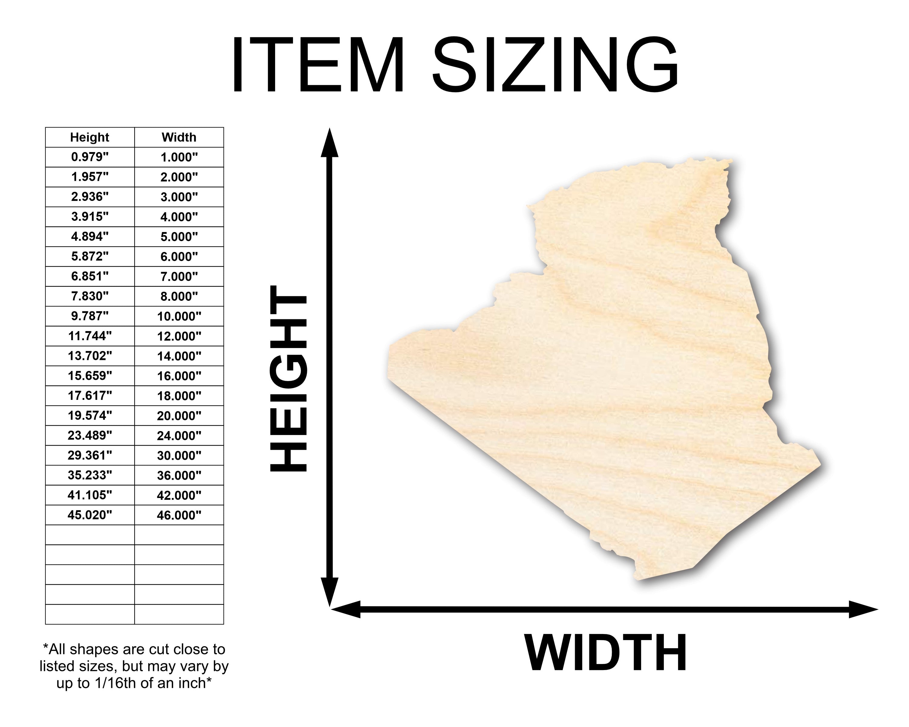 Unfinished Wood Algeria Silhouette Shape - Craft - up to 46"