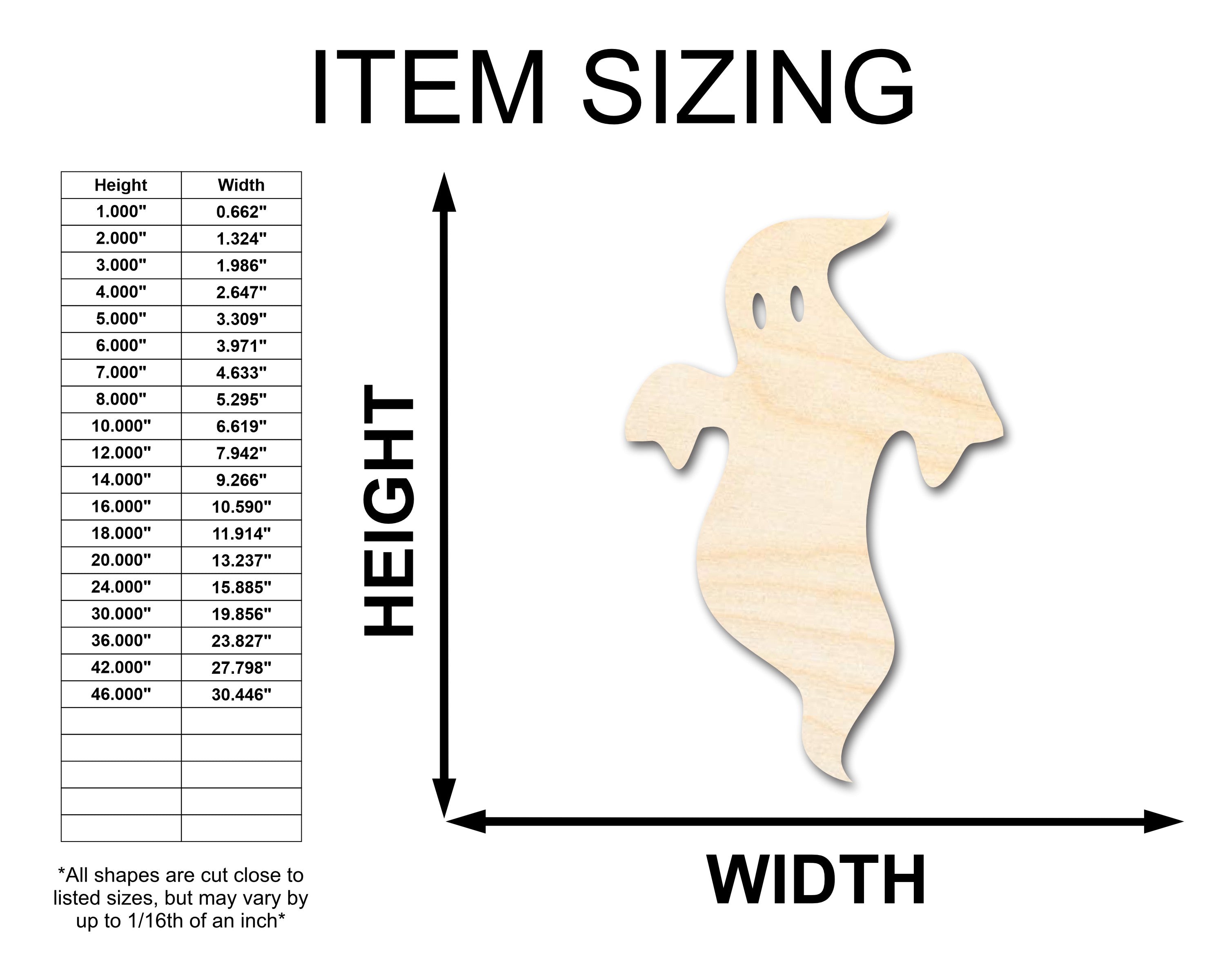 Unfinished Wood Ghost Shape - Craft - up to 46"