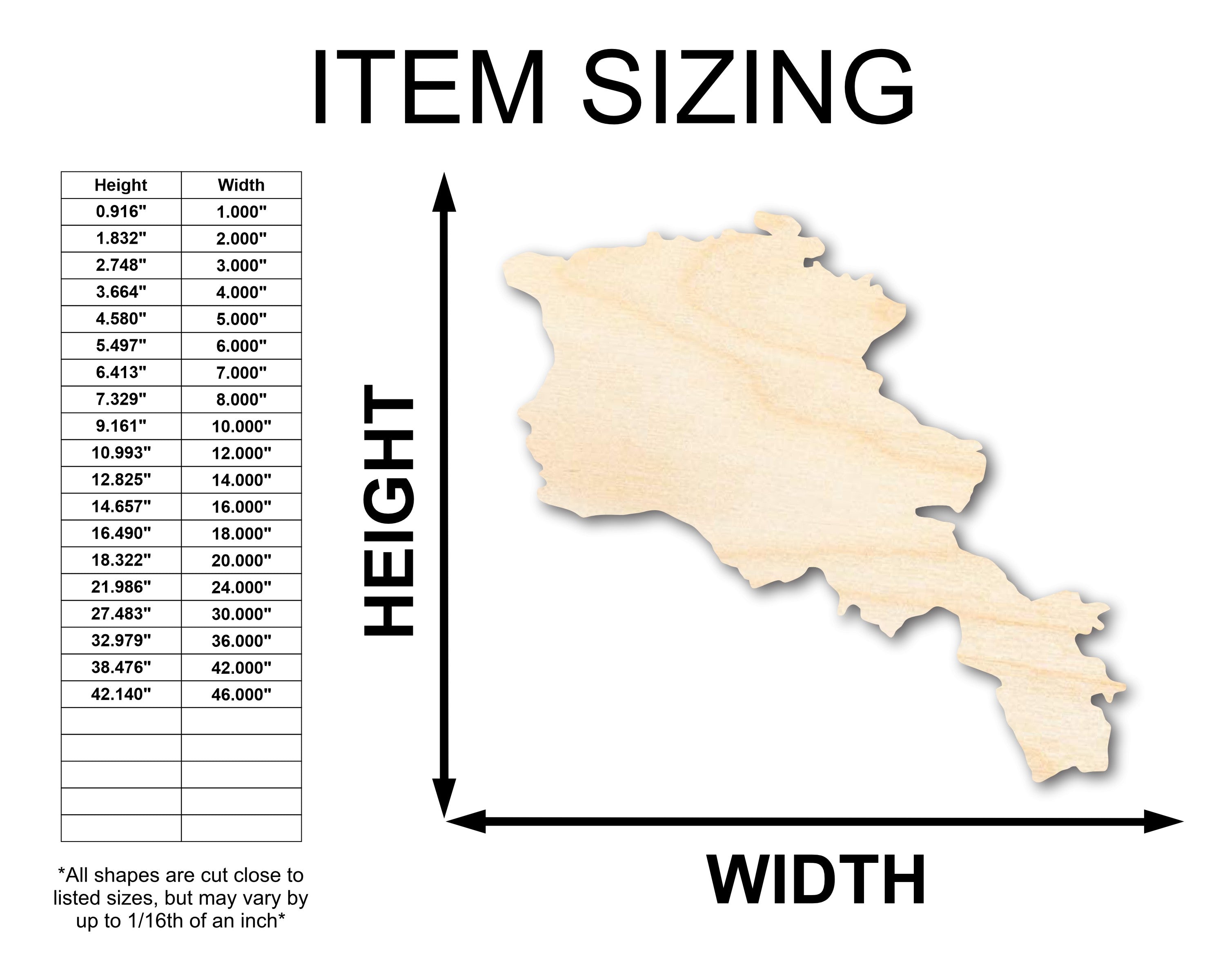 Unfinished Wood Armenia Country Shape - Eastern Europe Craft - up to 46" DIY