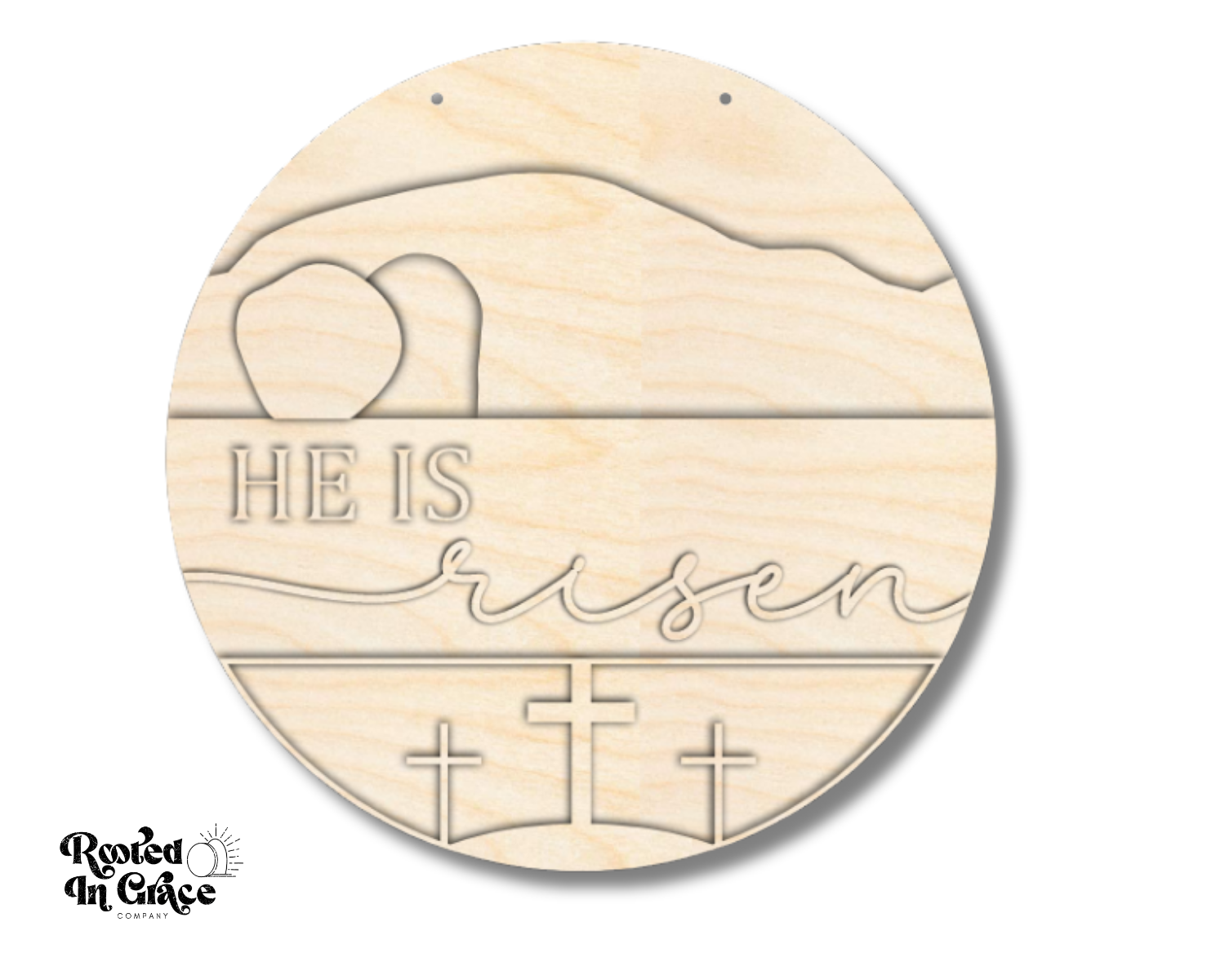 Unfinished Wood Minimalist He Is Risen Door Sign Kit | Rooted in Faith | 18" | Wood Craft Cutouts | 1/4" Thick |