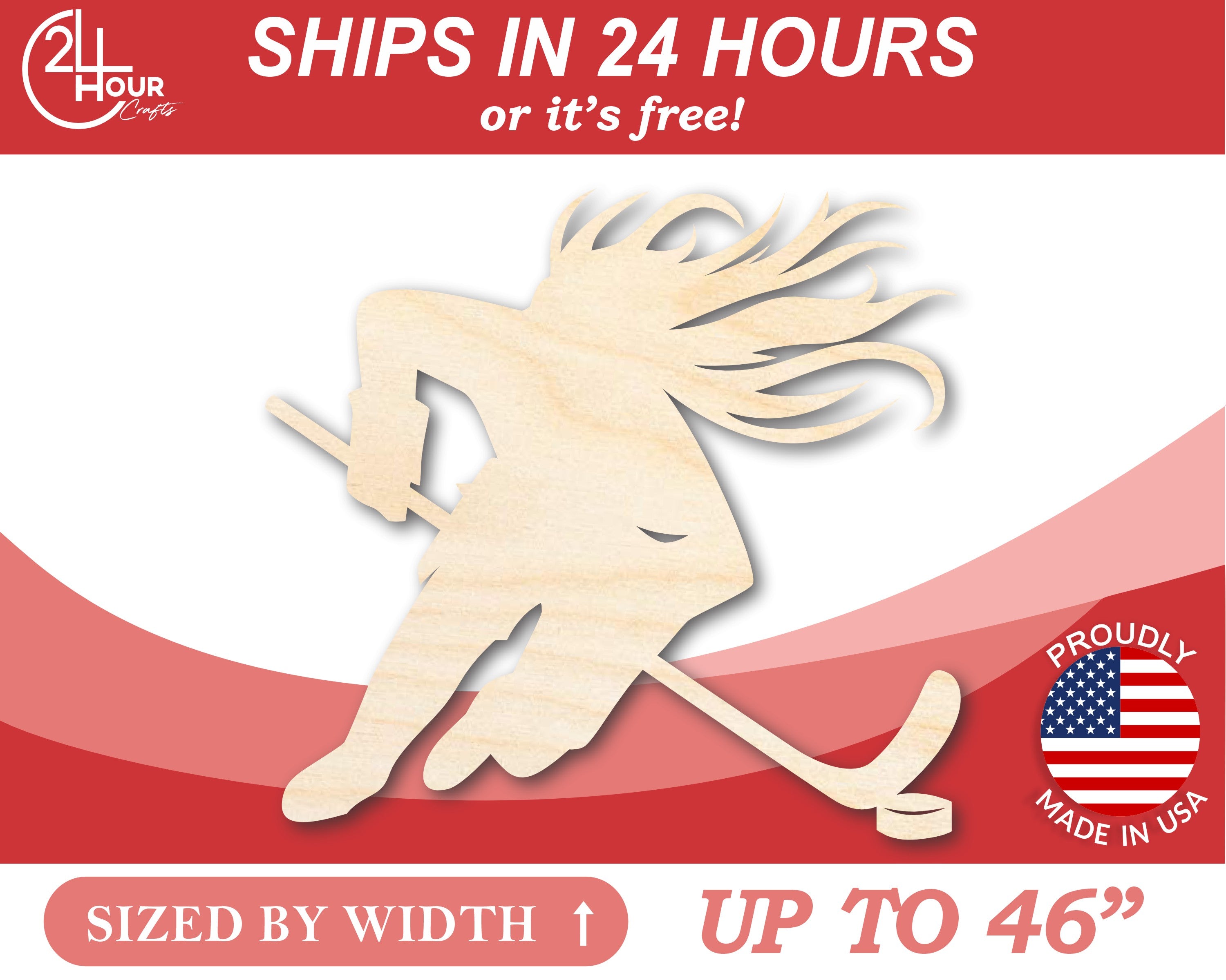 Unfinished Wood Hockey Player Female Shape | DIY Craft Cutout | up to 46" DIY
