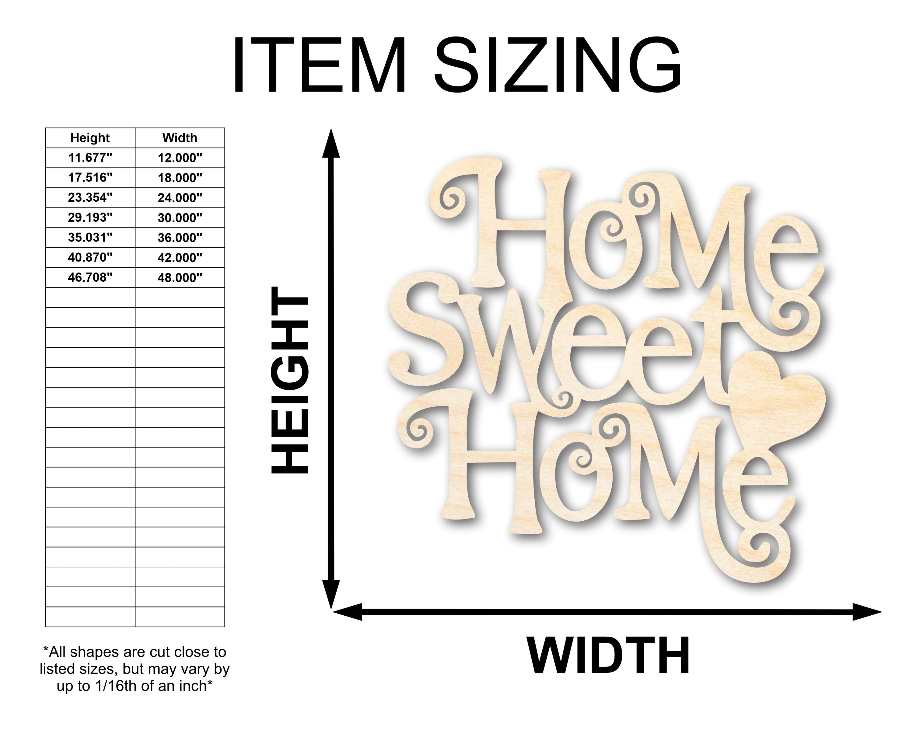 Unfinished Wood Home Sweet Home Shape - Word Craft - up to 46"