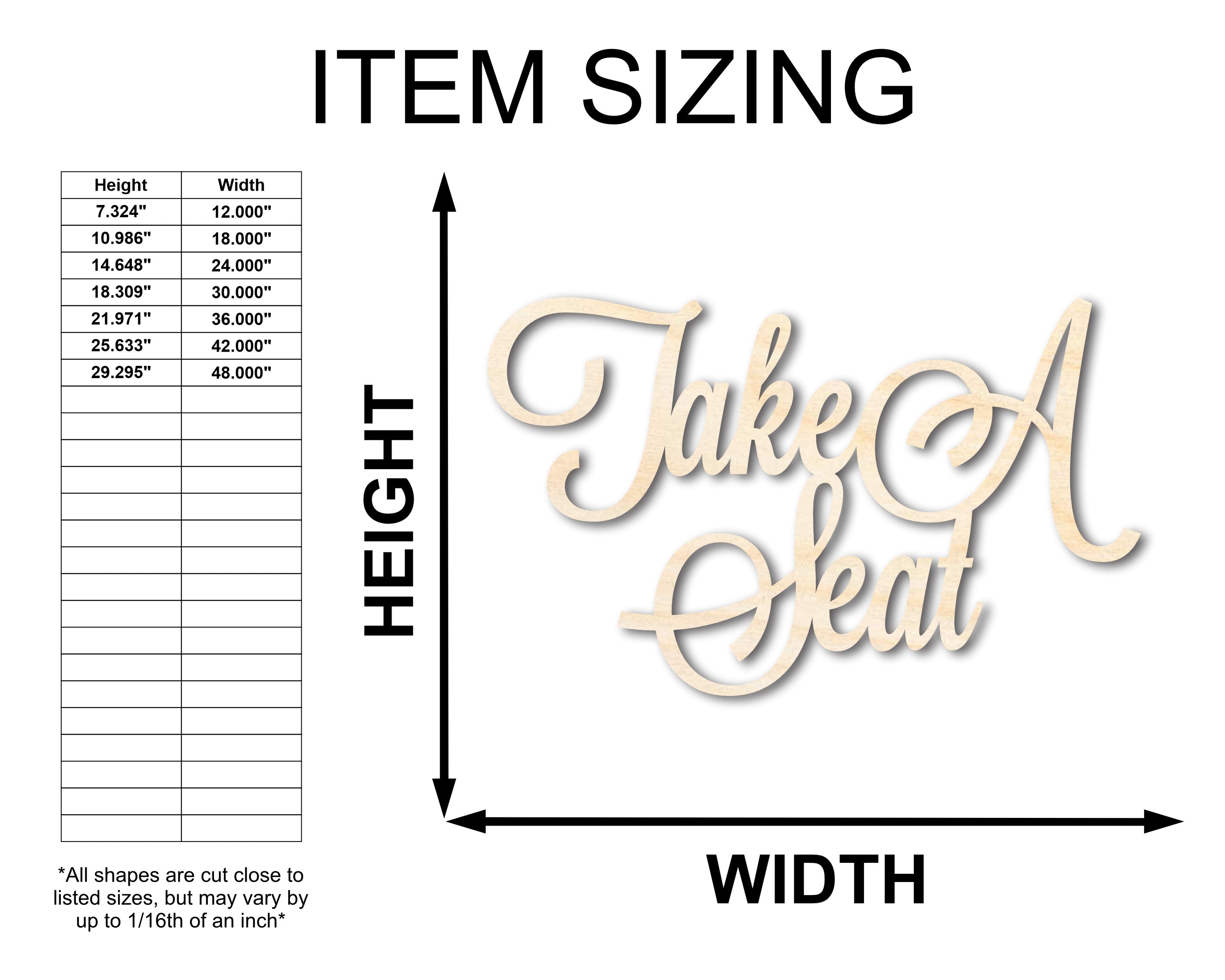 Unfinished Wood Take A Seat Shape - Word Wedding Craft - up to 46"