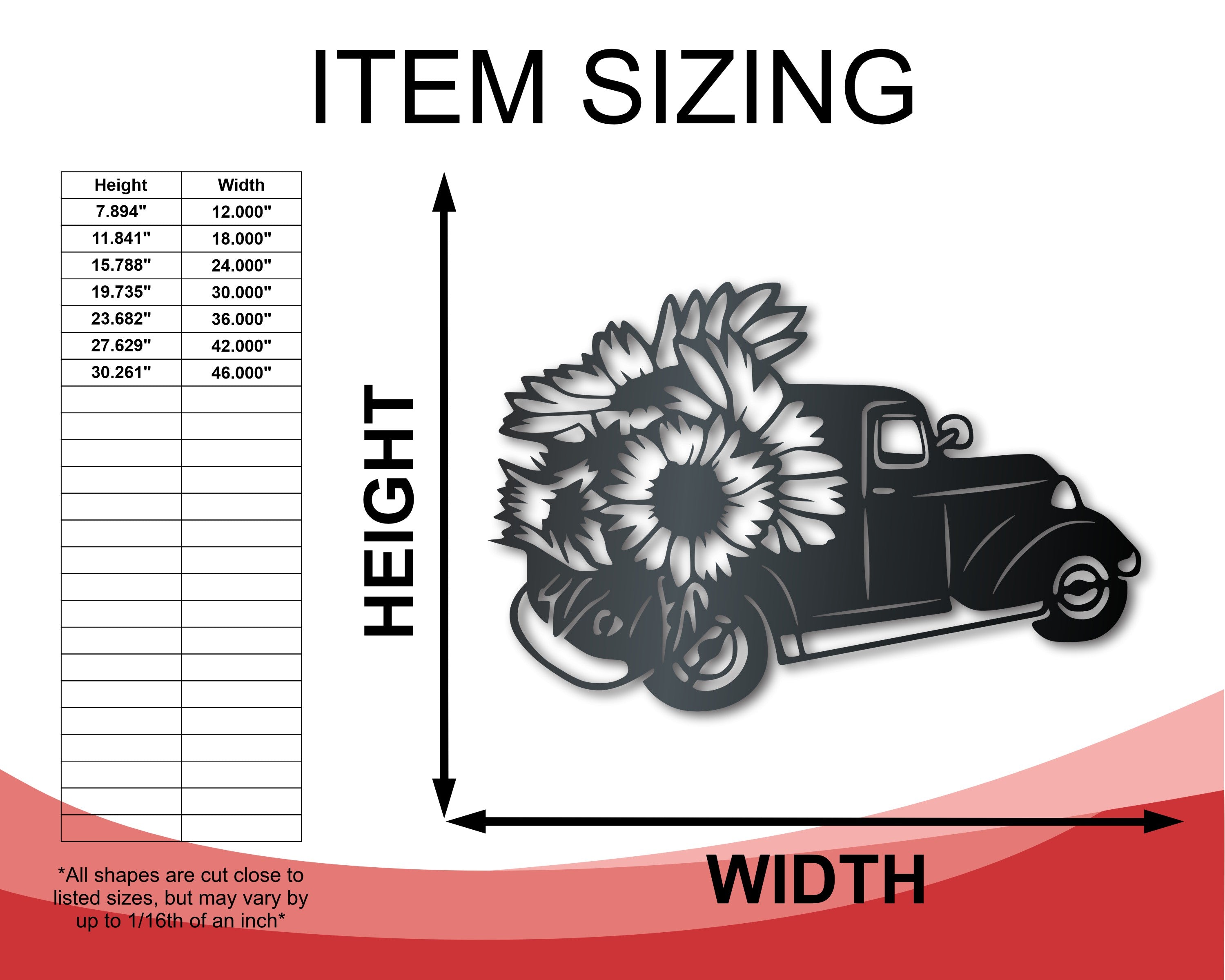 Metal Sunflower Pickup Truck Wall Art | Indoor Outdoor | Up to 30" | Over 20 Color Options
