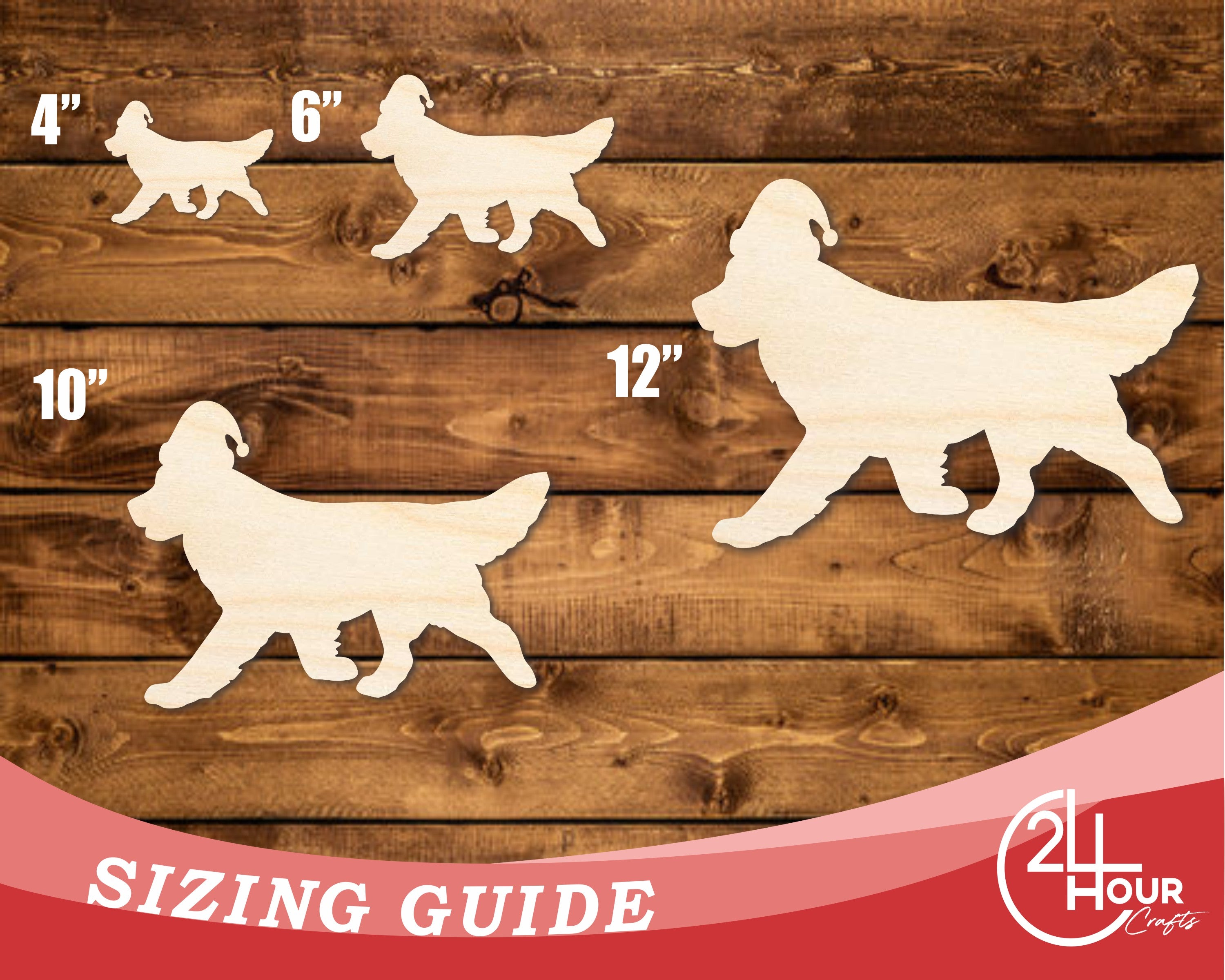 Unfinished Wood Golden Retriever With Santa Hat Shape | DIY Craft Cutout | up to 46" DIY