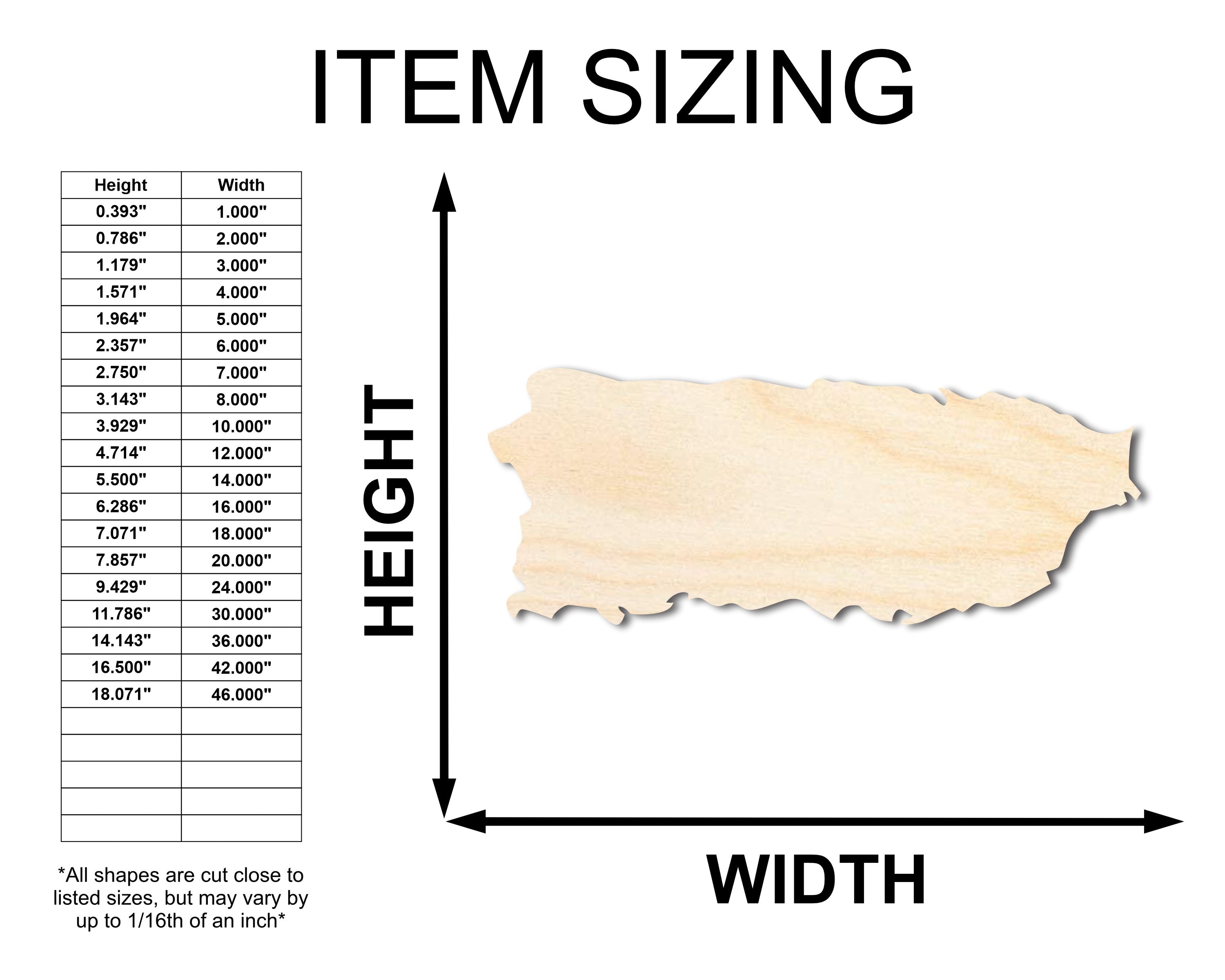 Unfinished Wood Puerto Rico Shape - US Territory Caribbean Island Craft - up to 46" DIY