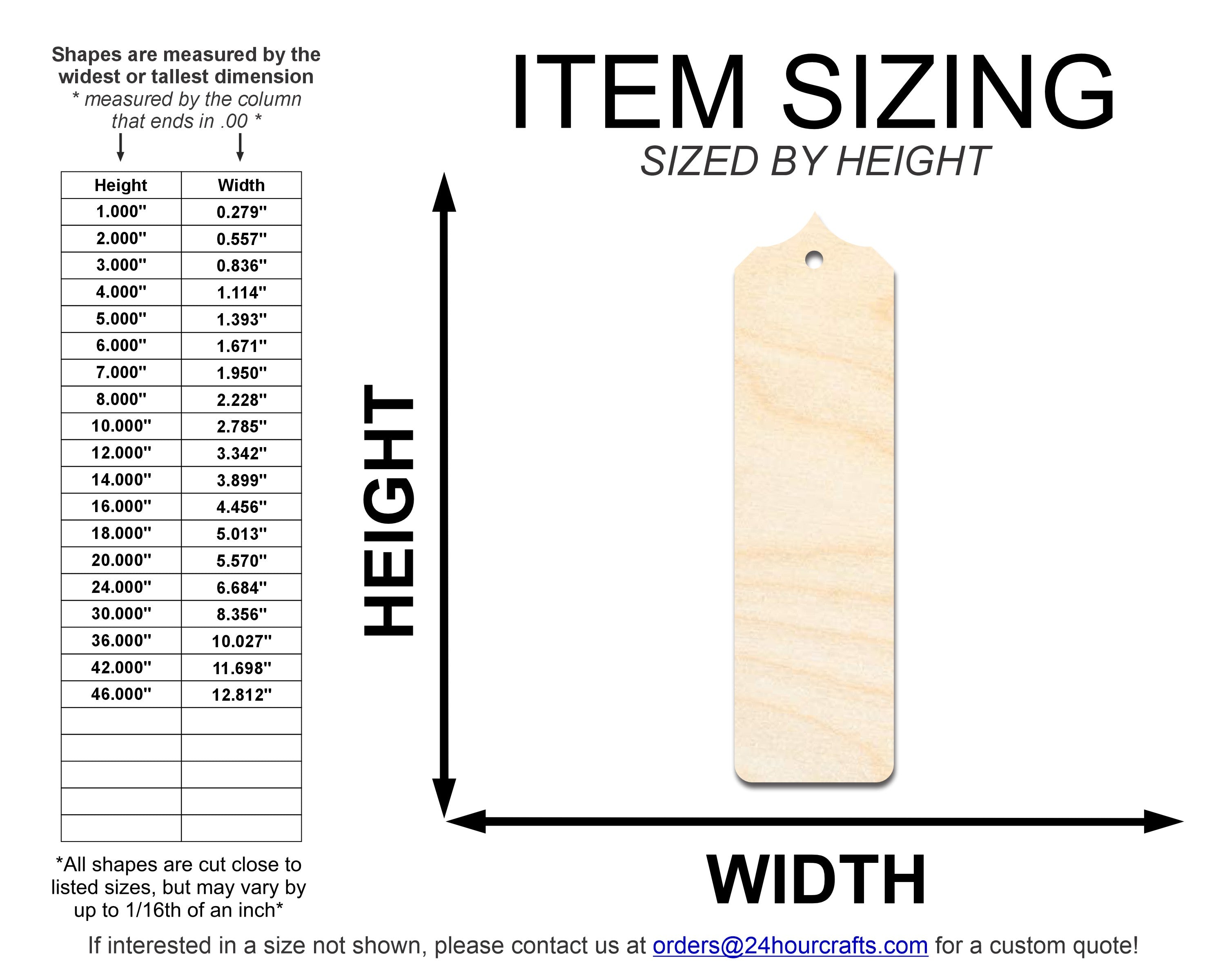 Unfinished Wood Sharp Pointed Top Bookmark Shape | DIY Craft Cutout | up to 12" DIY