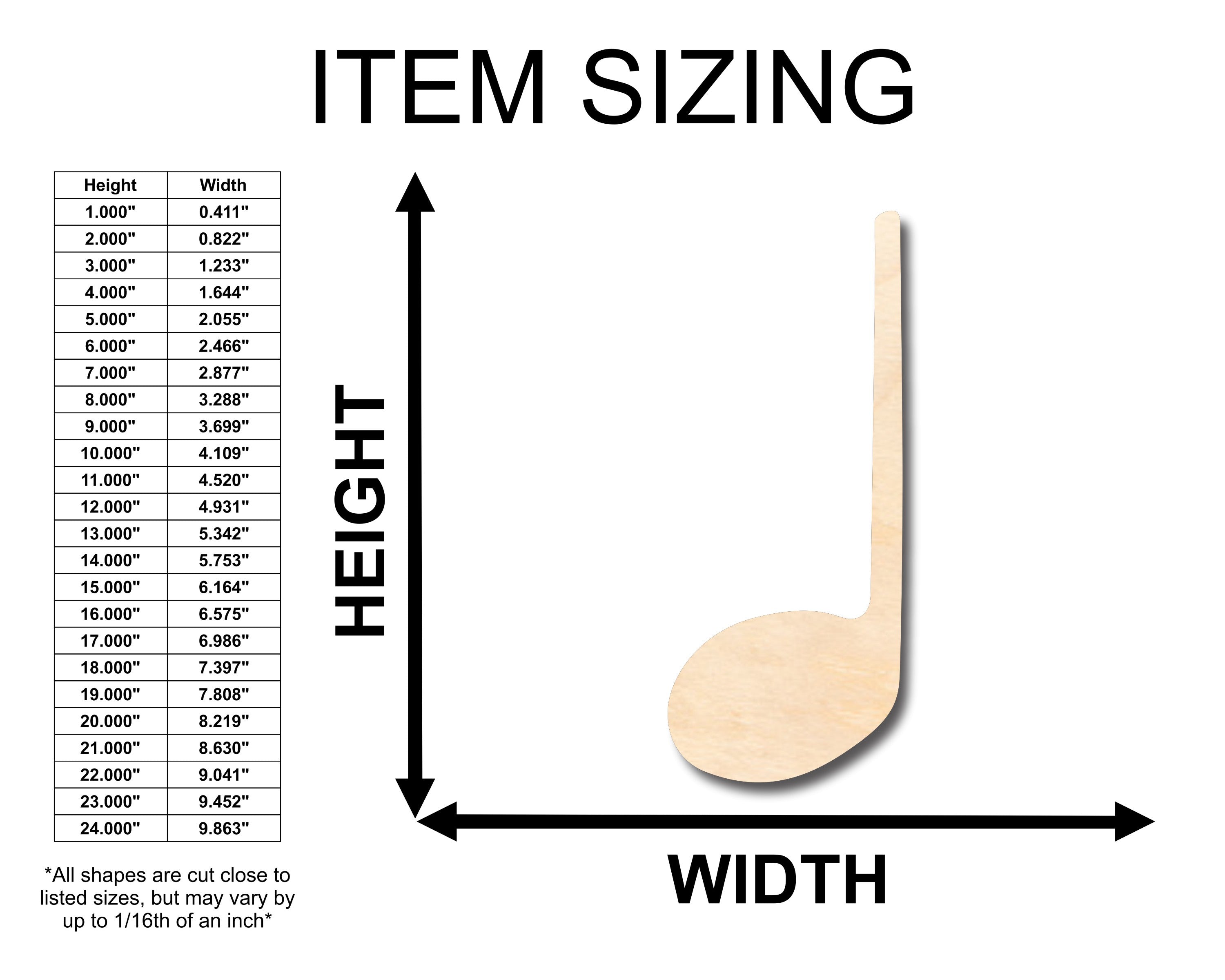 Unfinished Wood Quarter Note Music Art Shape - Craft - up to 46" DIY