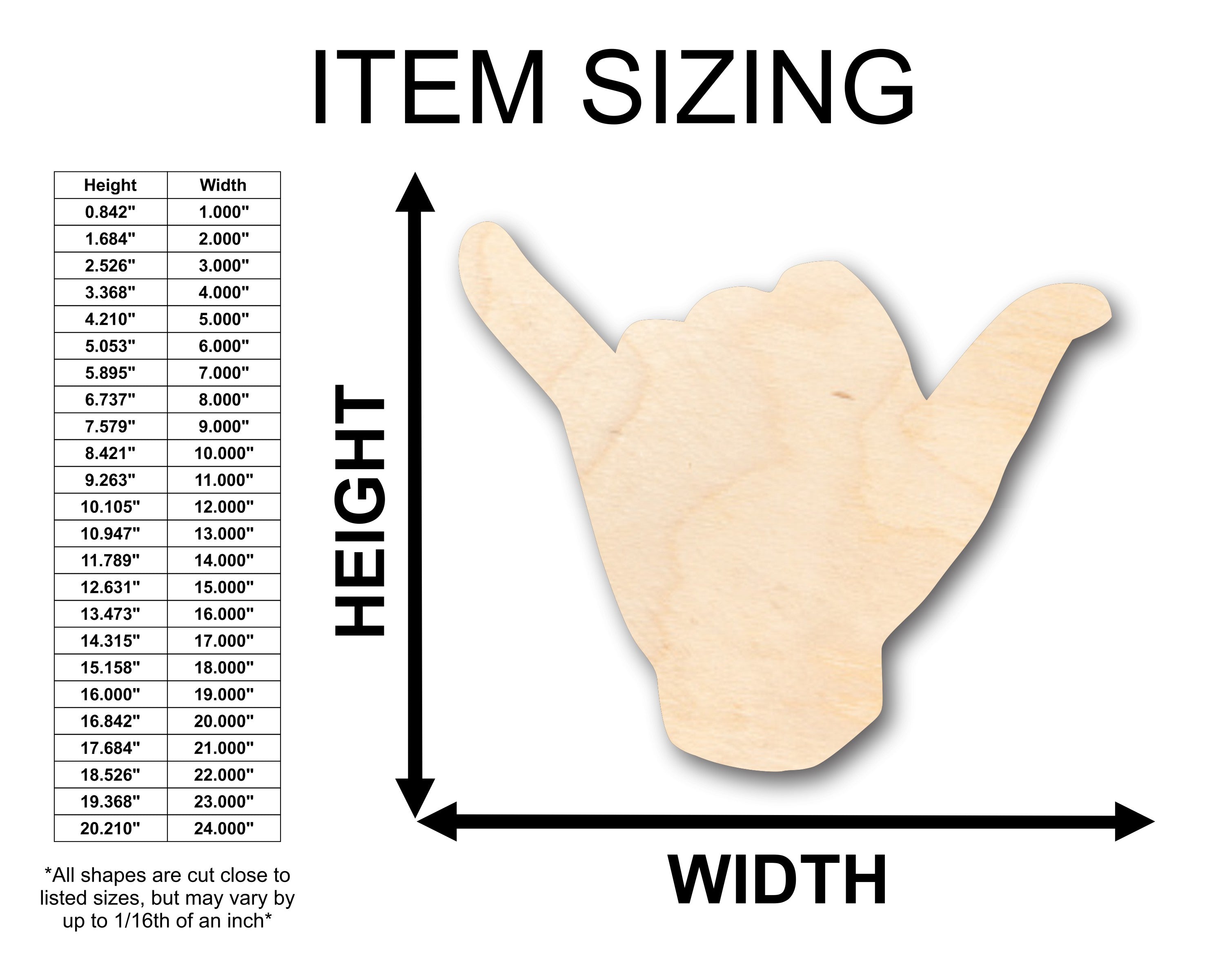 Unfinished Wood Shaka Sign Language Shape - Craft - up to 46" DIY