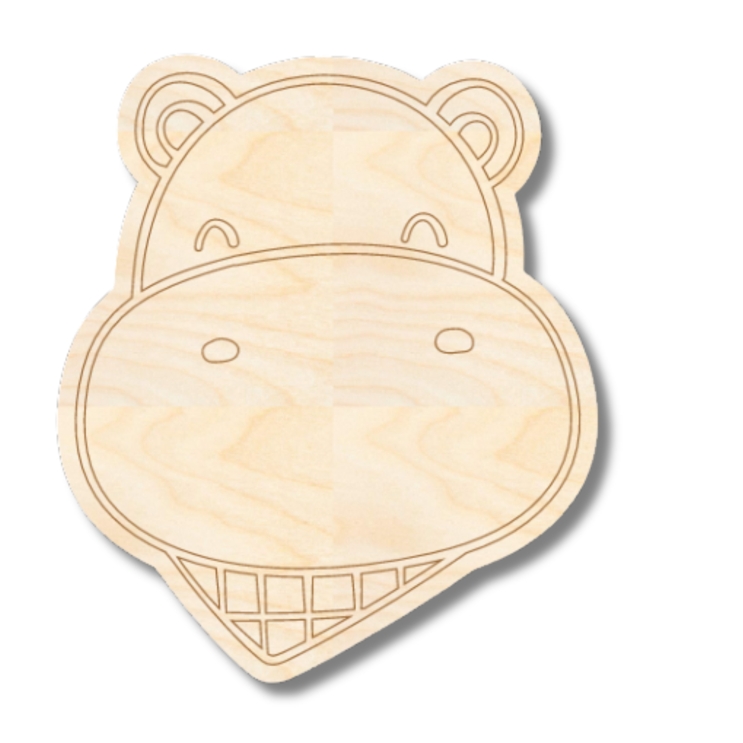 Unfinished Wood Etched Hippo Head Shape | Paint By Line Crafts | up to 30" DIY
