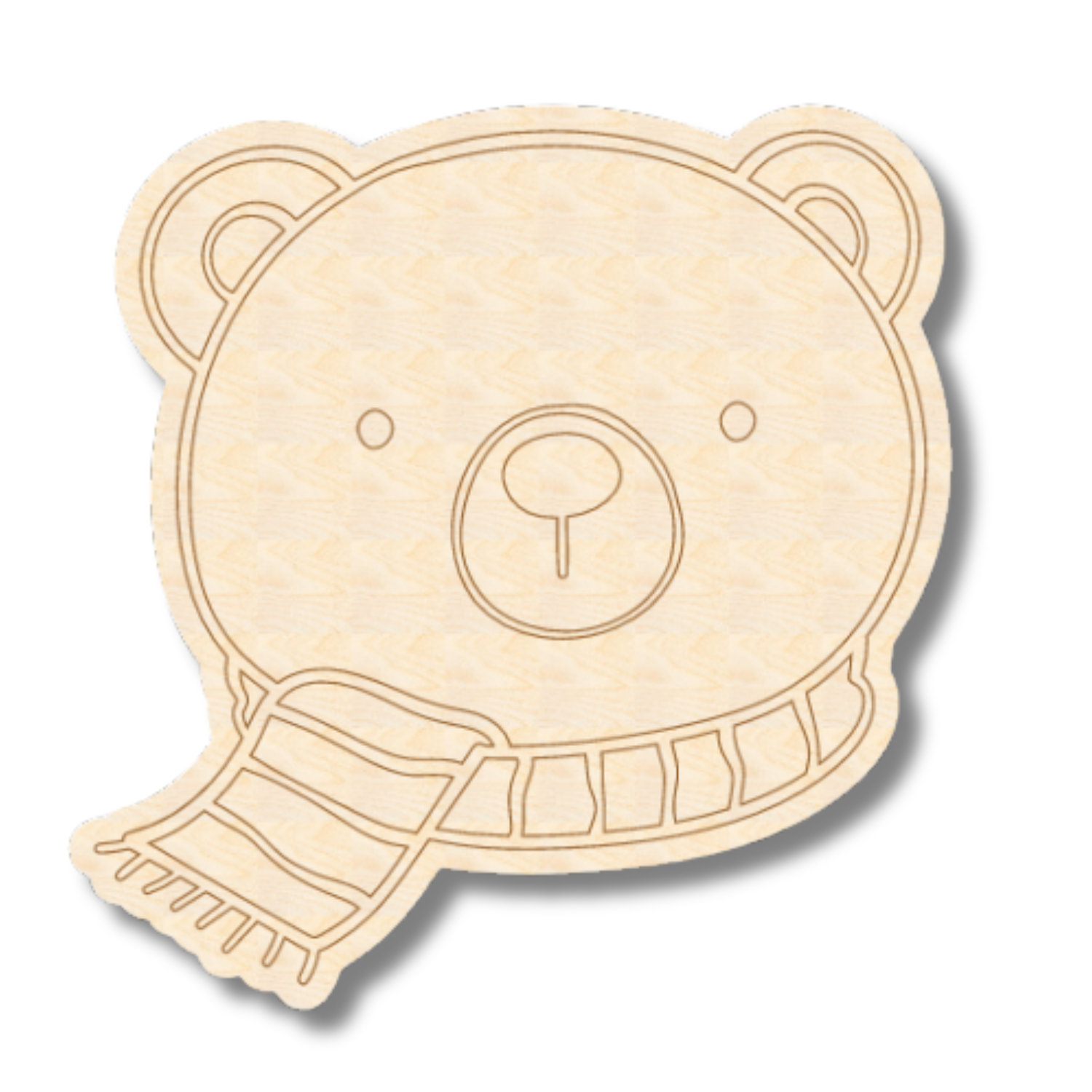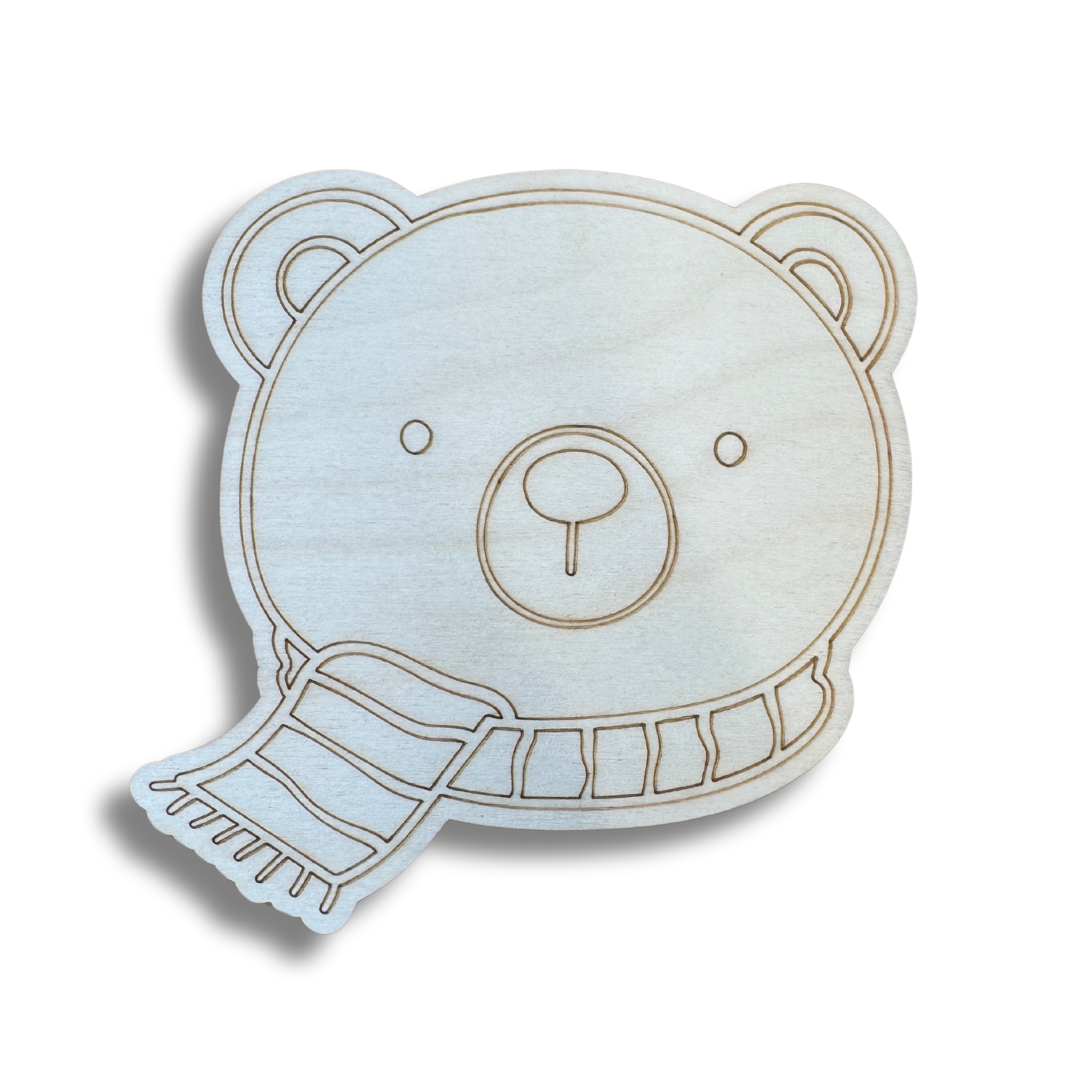 Unfinished Wood Etched Polar Bear Head Shape | Paint By Line Crafts | up to 30" DIY