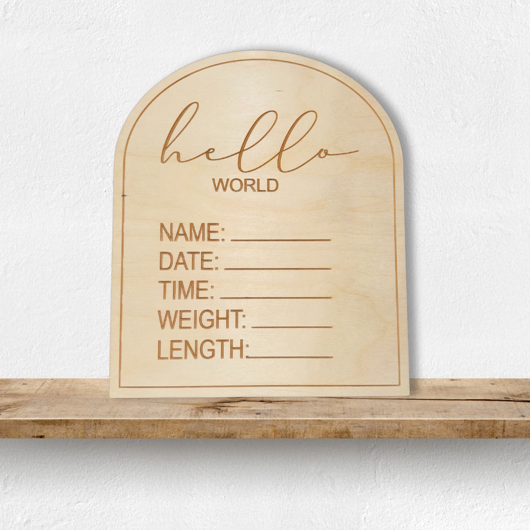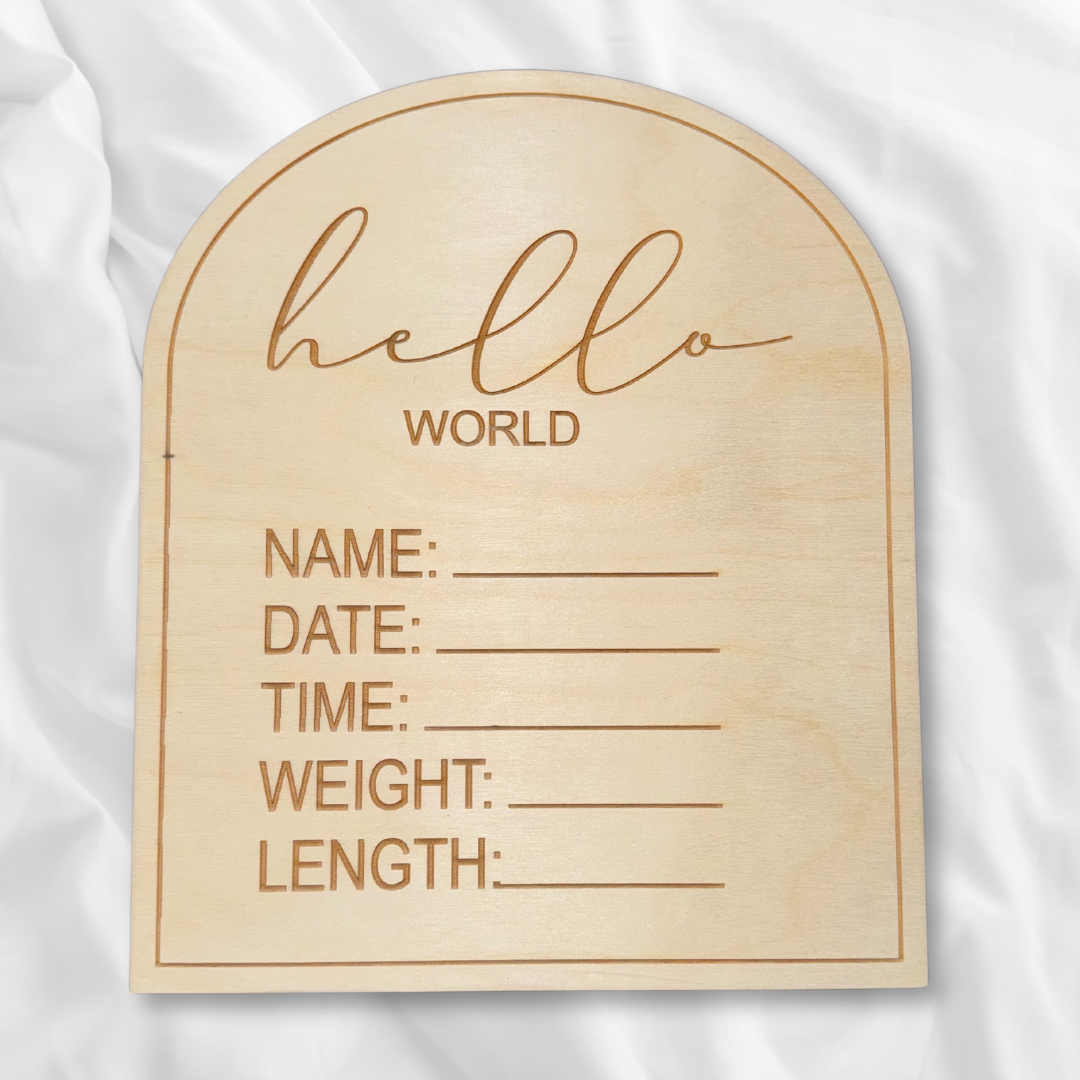 Hello World! Introducing our NEW Engraved Baby Birth Boards, the perfect way to welcome your little one into the world. Crafted from high-quality 1/4" thick wood, these beautifully engraved boards are a timeless keepsake to celebrate your baby's arrival.