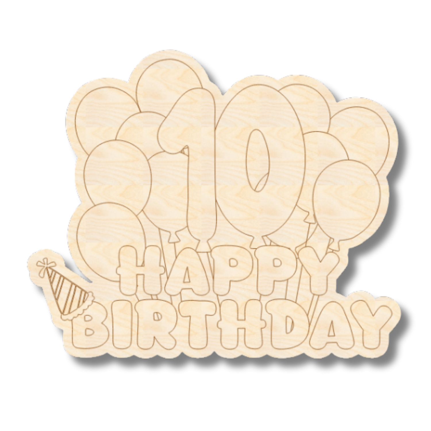 Unfinished Wood Etched 10th Birthday Balloons Shape | Paint By Line Crafts | up to 30" DIY