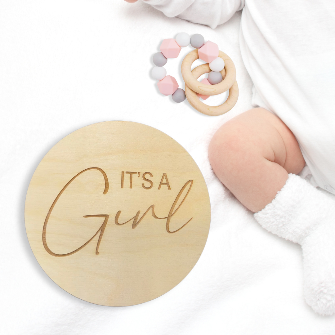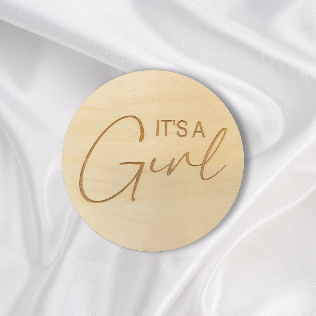 It's A Girl Engraved Round | Engraved Wood Cutouts | 1/4" Thick |