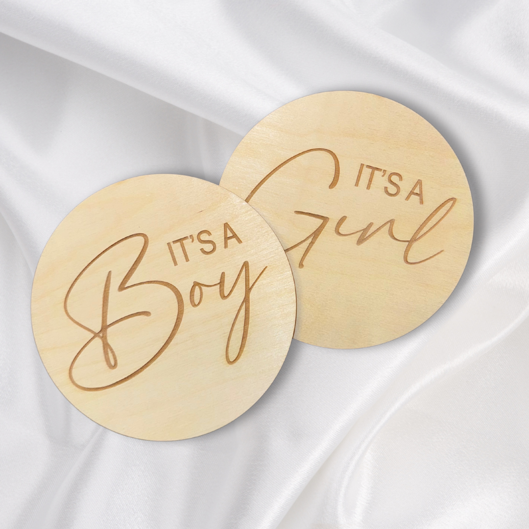 Celebrate your little one's arrival with our engraved wood rounds. Perfect for gender reveals, photo ops, or as a lasting keepsake. Shop now and add an extra touch of excitement to this special moment!