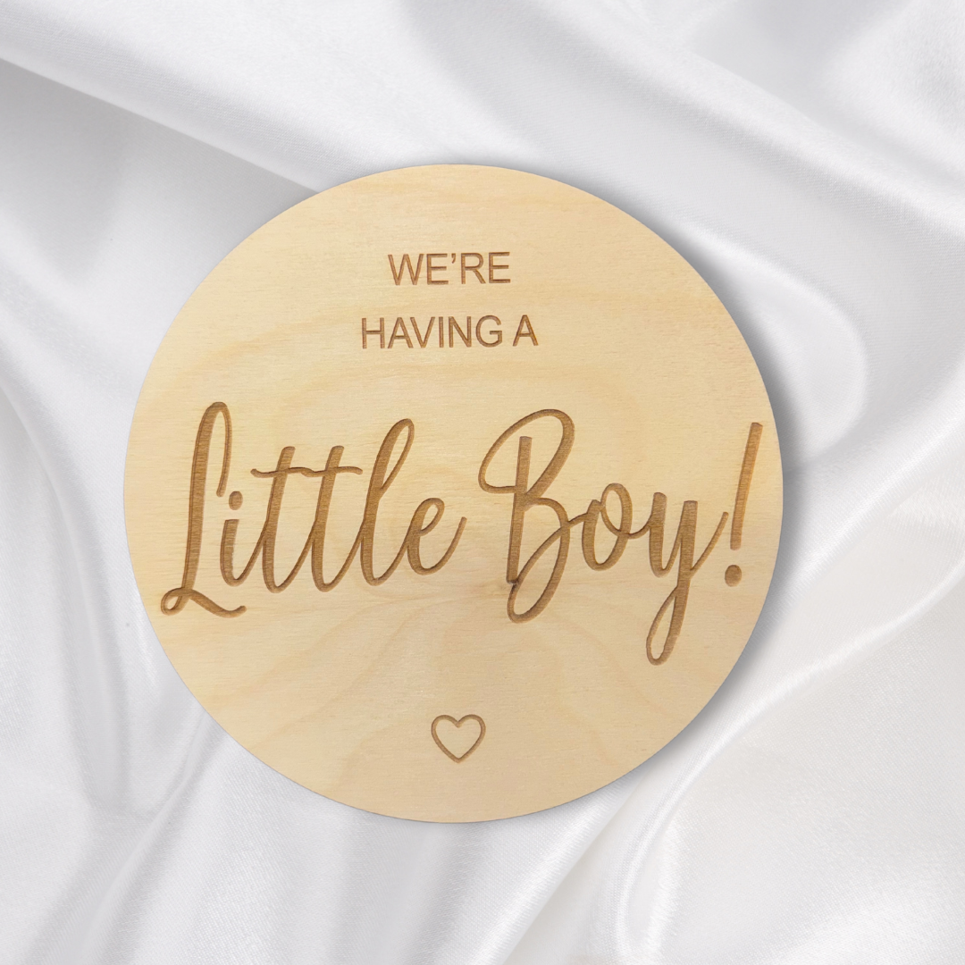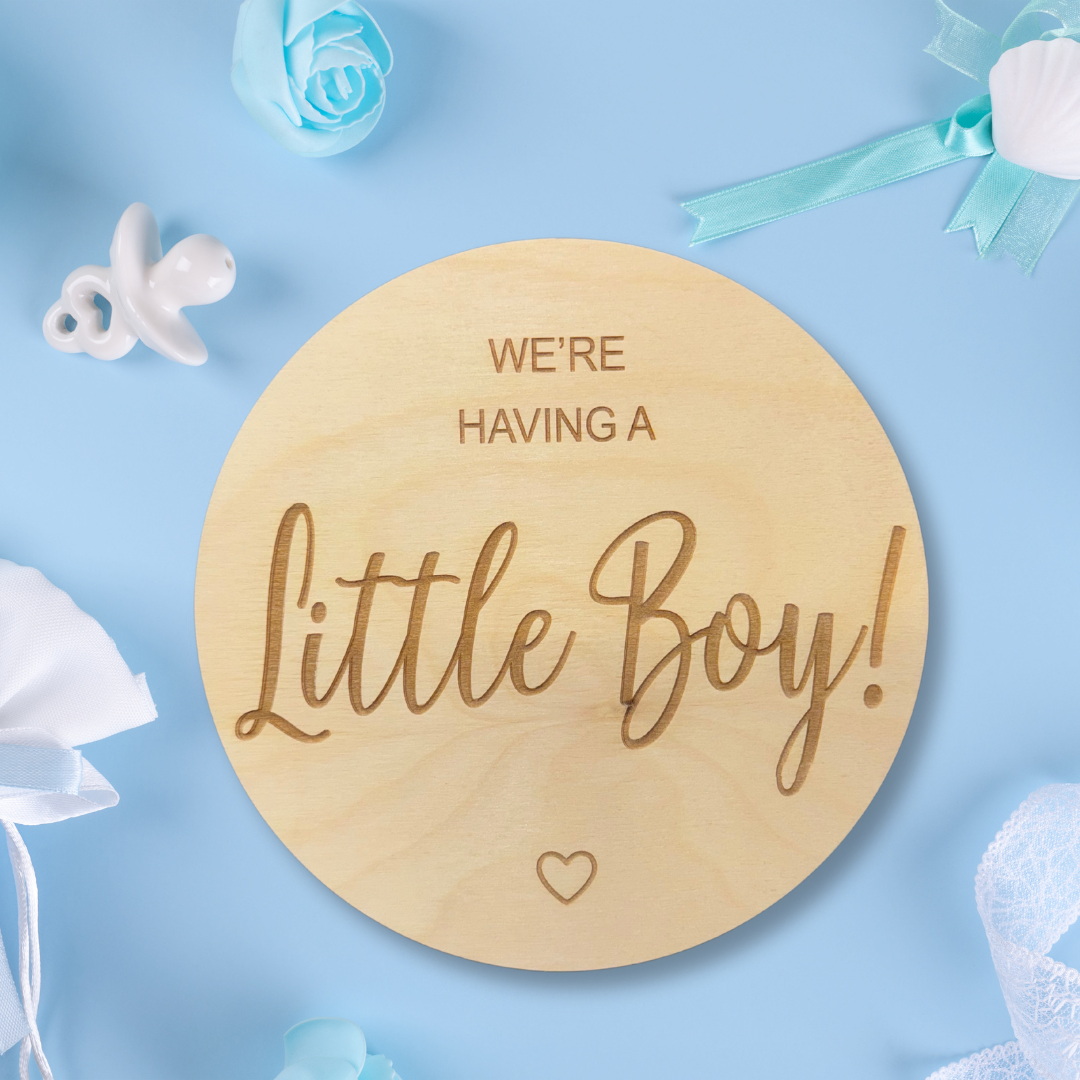 We're Having A Little Boy Engraved Round | Engraved Wood Cutouts | 1/4" Thick |