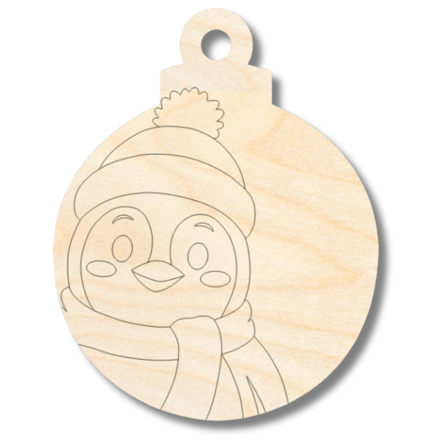 Unfinished Wood Etched Penguin Ornamet Shape | Paint By Line Crafts | up to 30" DIY