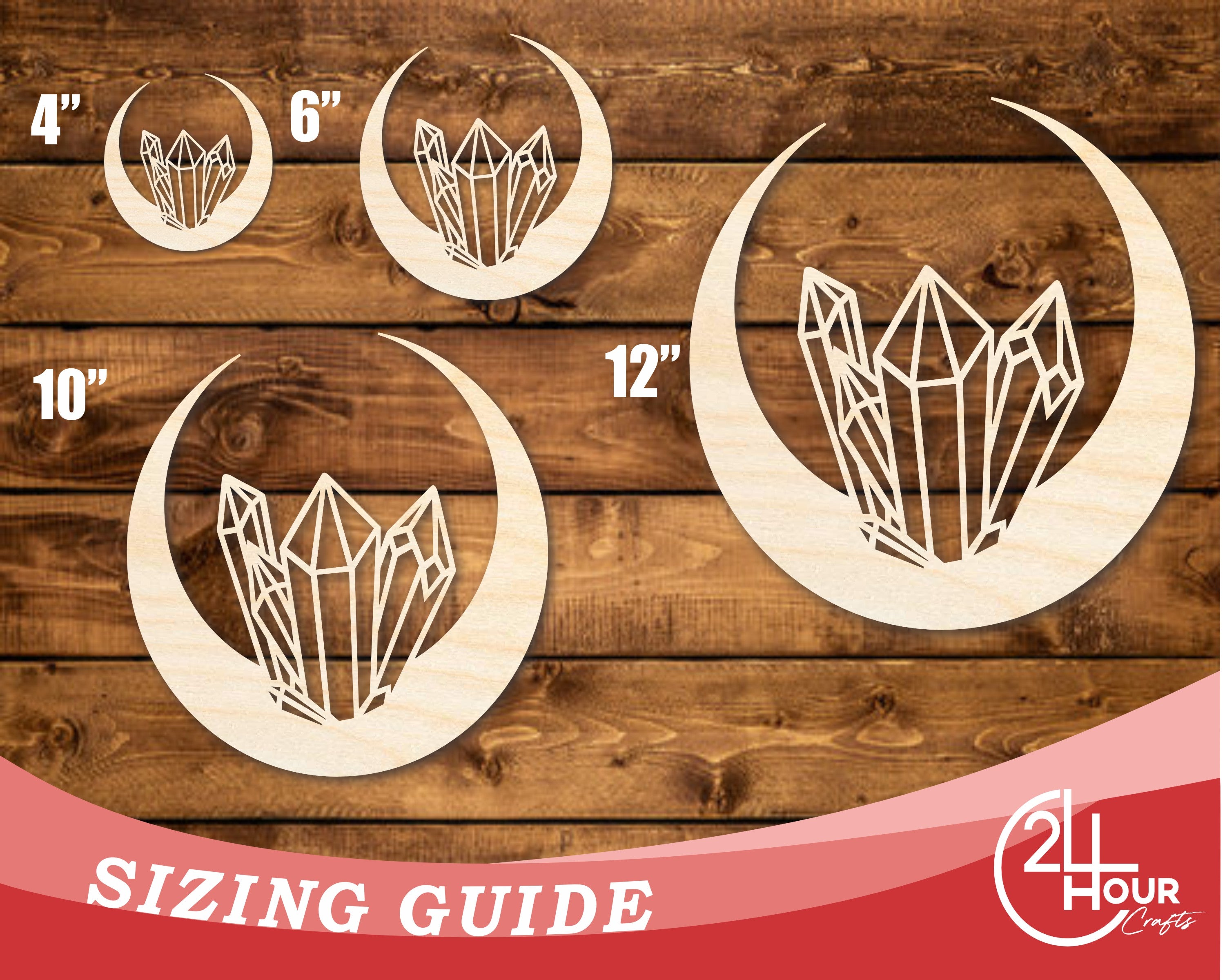 Unfinished Wood Crystal Moon Shape | JGrondz | DIY Craft Cutout | up to 46" DIY |
