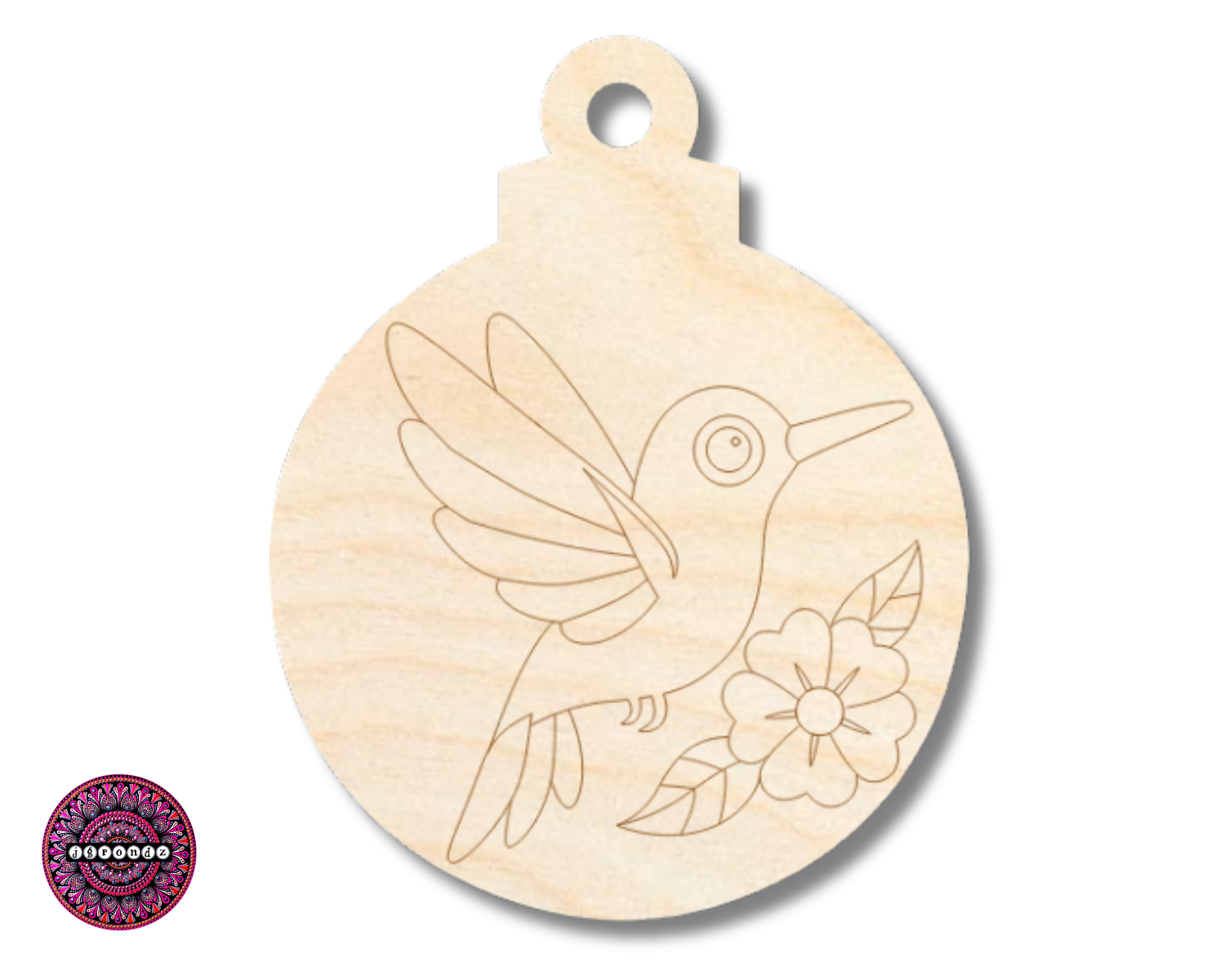 Unfinished Wood Etched Hummingbird Flower Ornament Shape | JGrondz | Paint By Line Crafts | up to 30" DIY