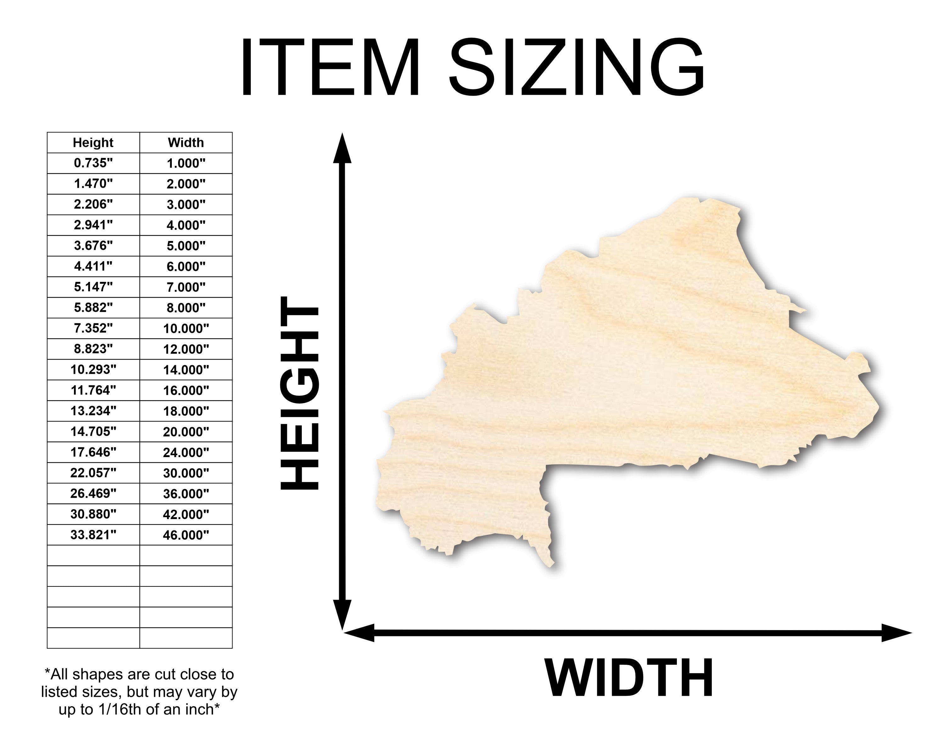 Unfinished Wood Burkina Country Shape - West Africa Craft - up to 46" DIY