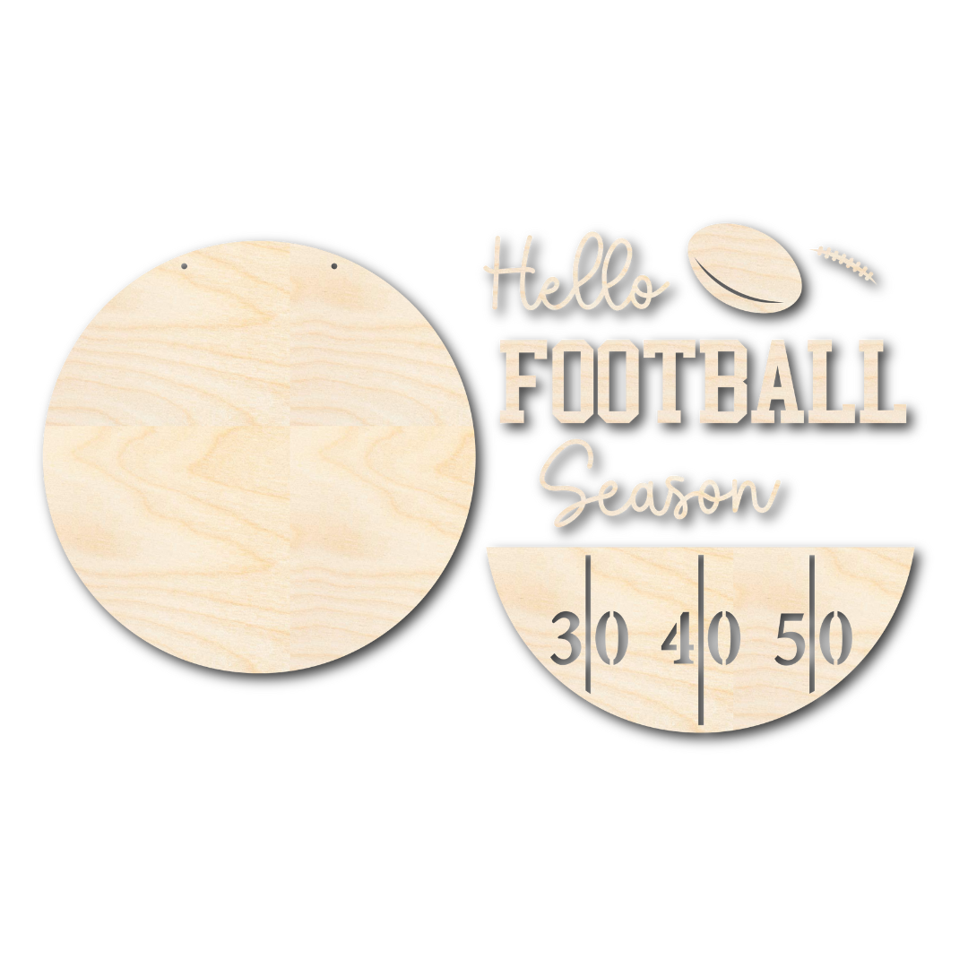 Unfinished Wood Hello Football Season Door Sign Kit | Wood Craft Cutouts | 1/4" Thick |