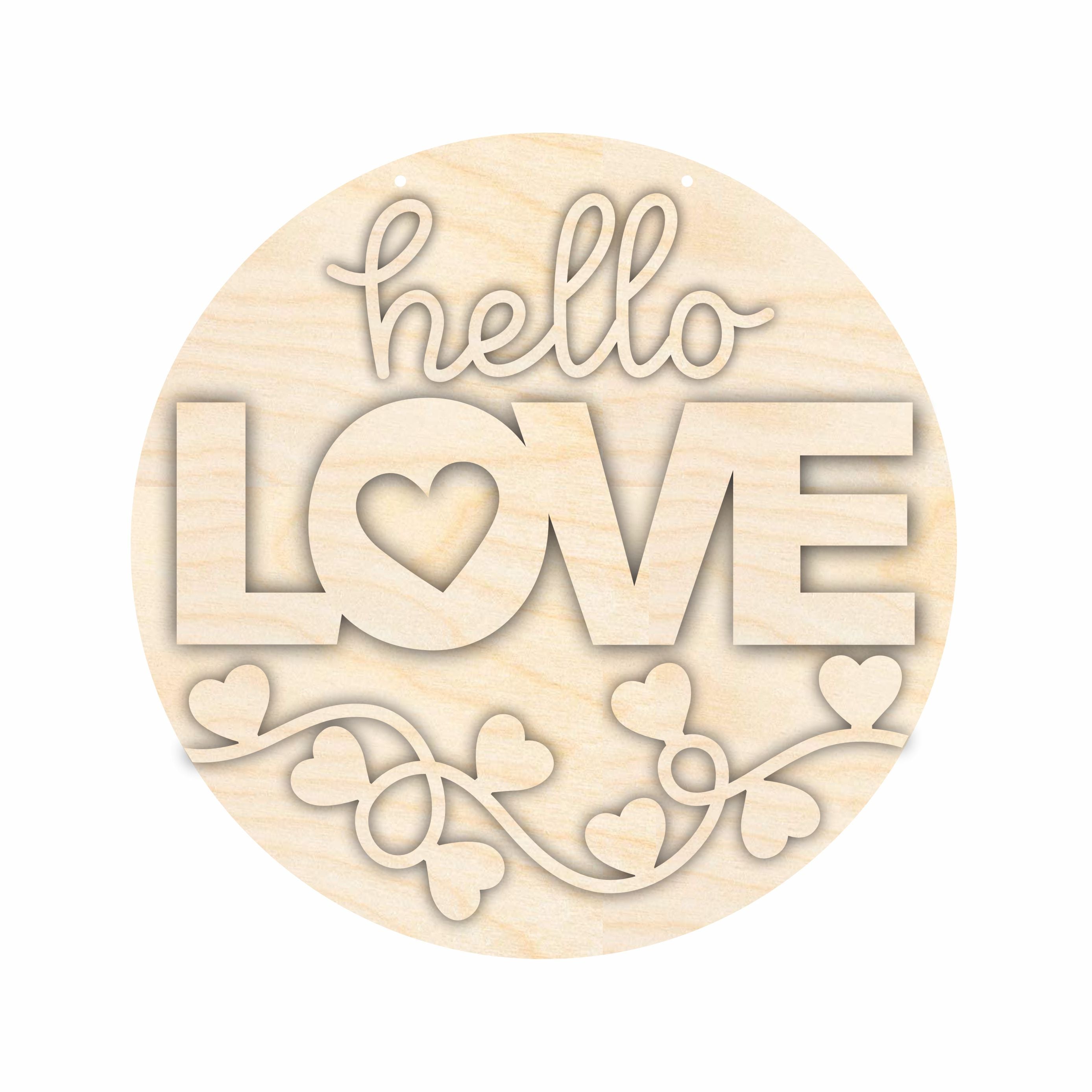 Unfinished Wood Hello Love Valentine Door Sign Kit | Wood Craft Cutouts | 1/4" Thick |