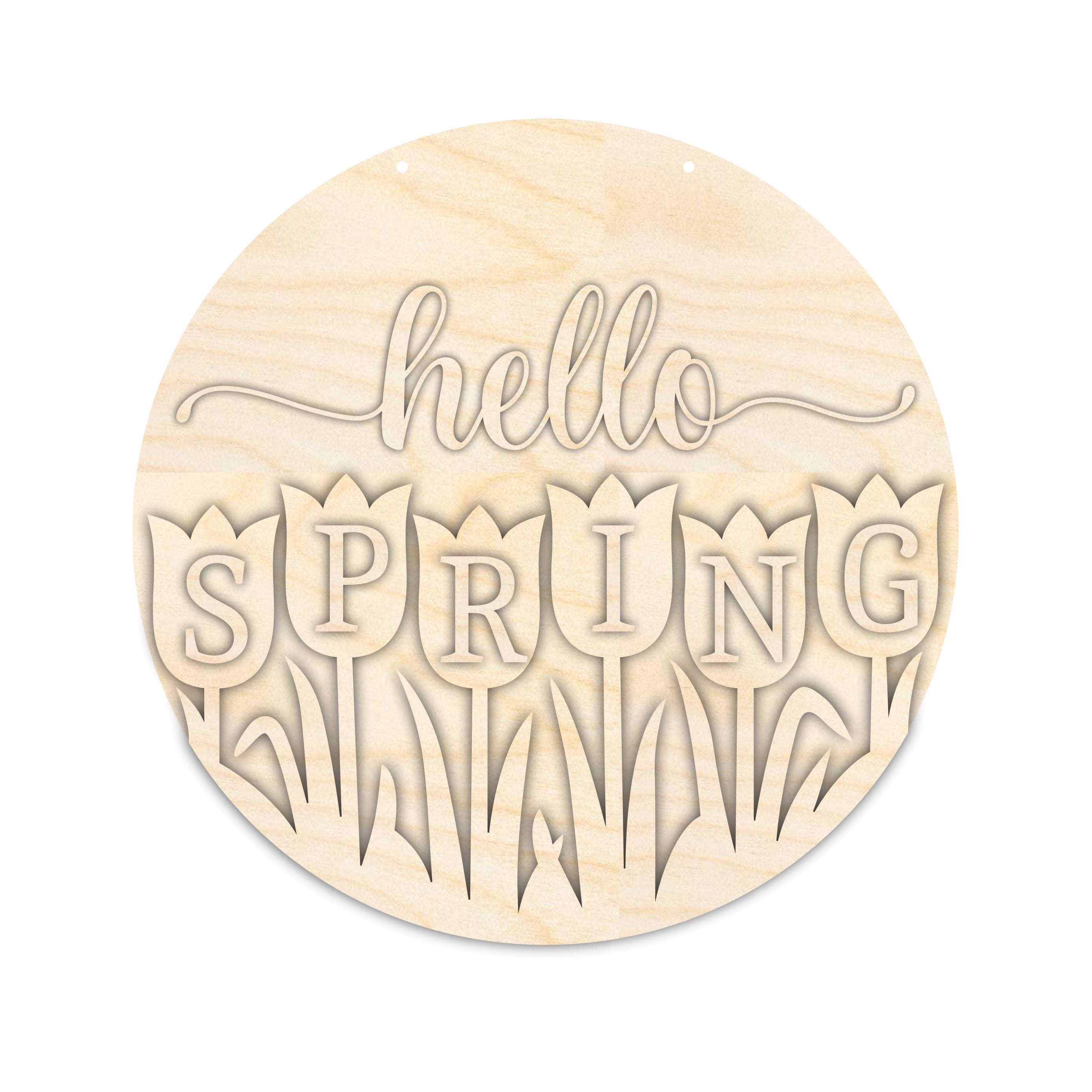 Unfinished Wood Hello Spring Door Sign Kit | Wood Craft Cutouts | 1/4" Thick |